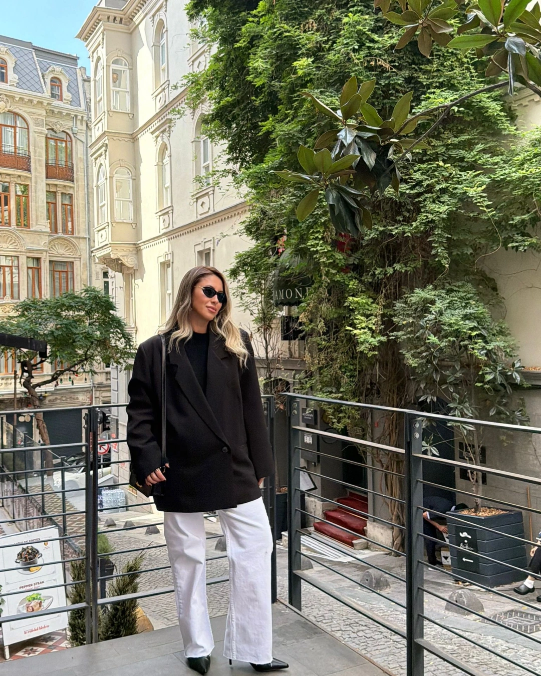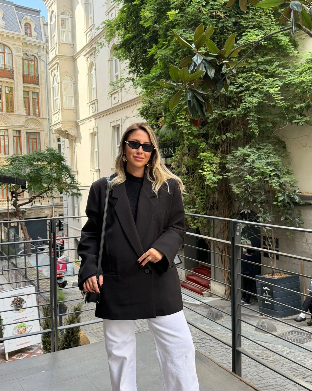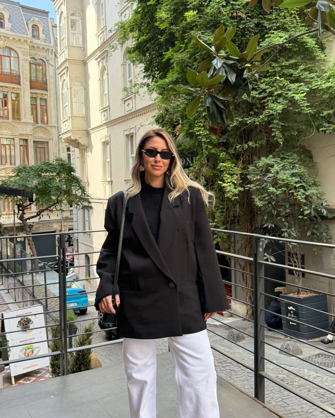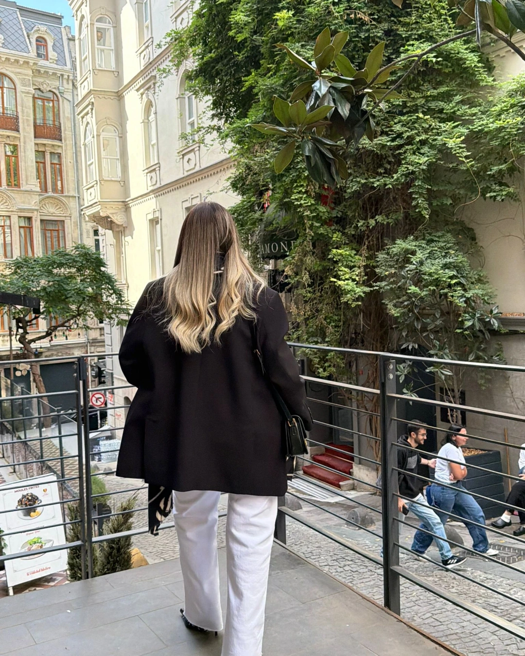 SİYAH TEK DÜĞMELİ OVERSİZE BLAZER CEKET