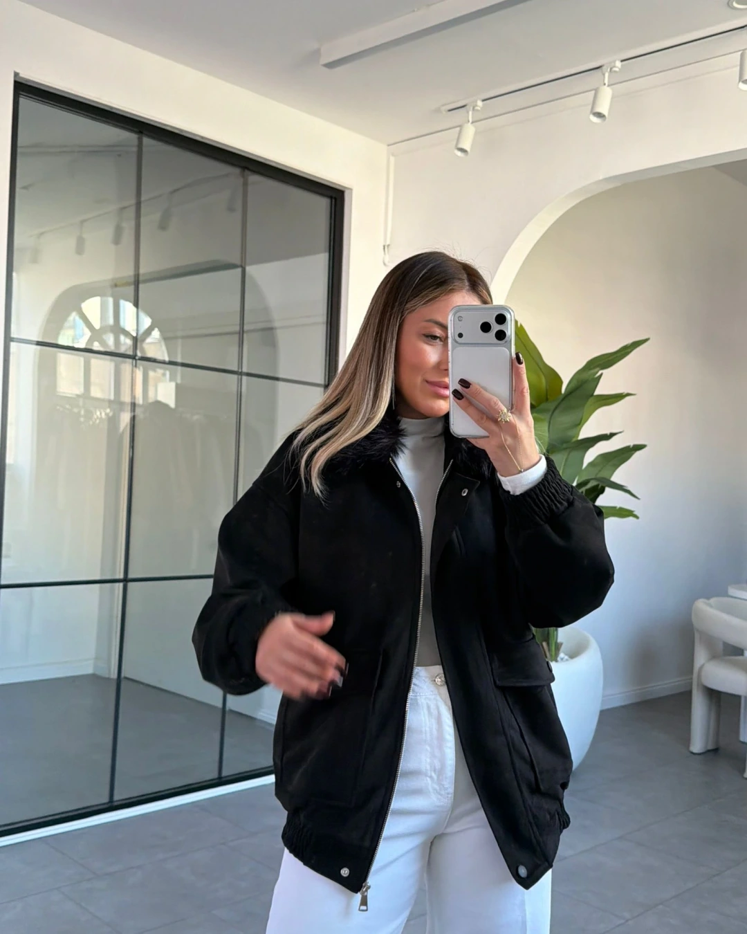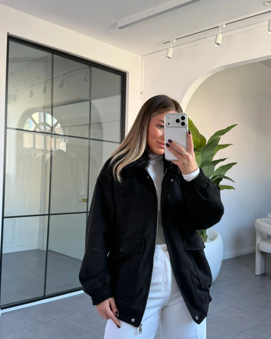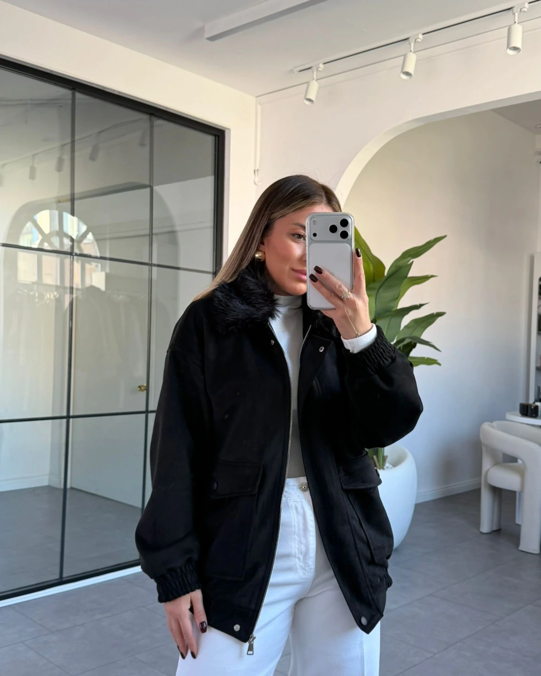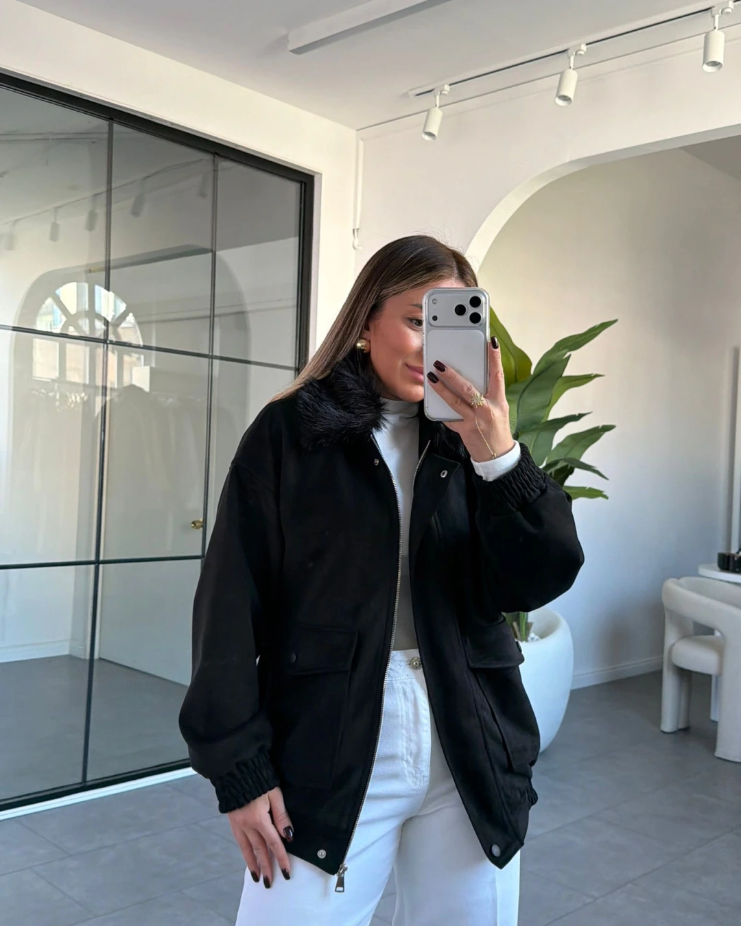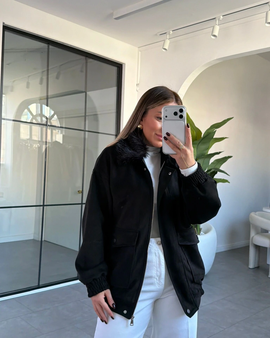 SİYAH TORBA CEPLİ KÜRK YAKA SÜET CEKET