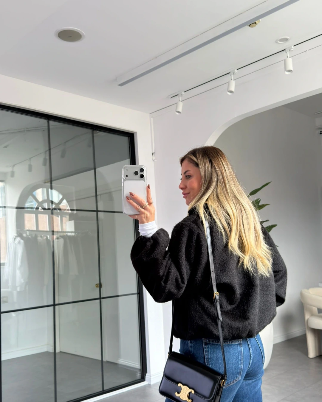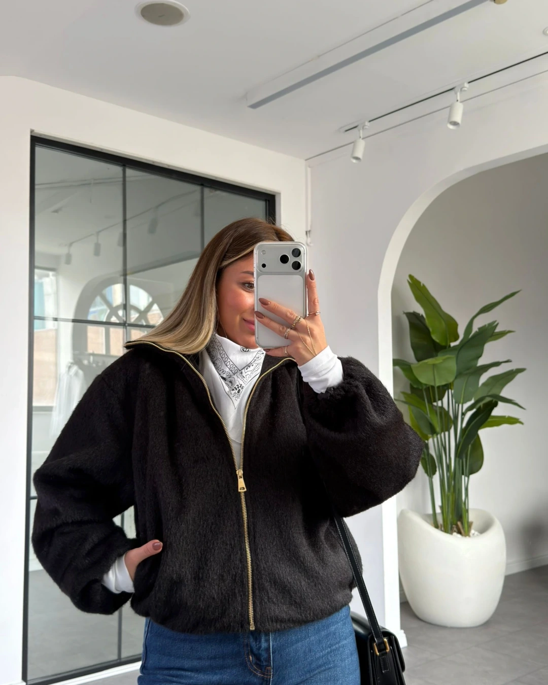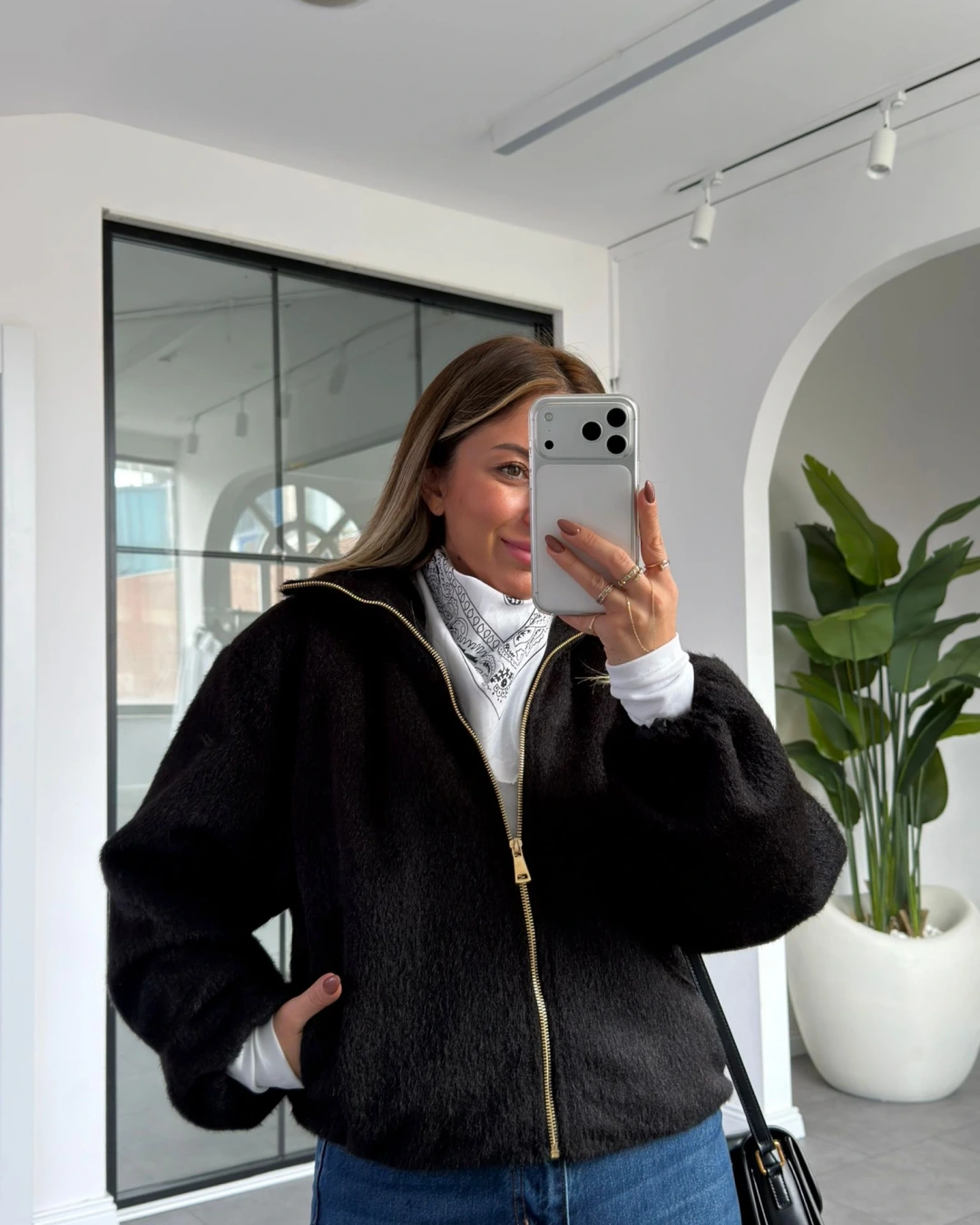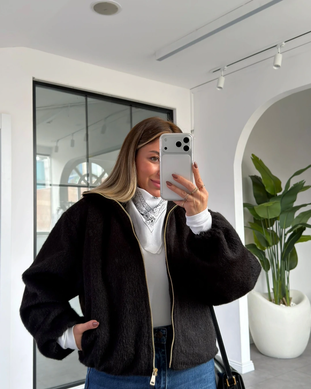 SİYAH TÜYLÜ KAŞE BOMBER CEKET