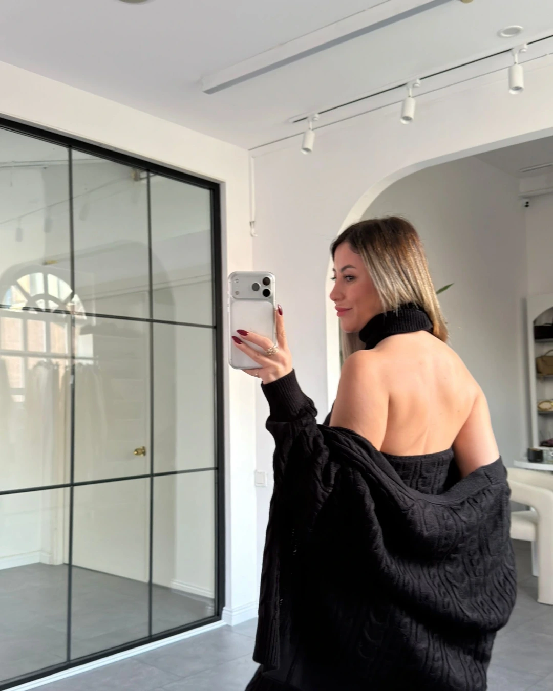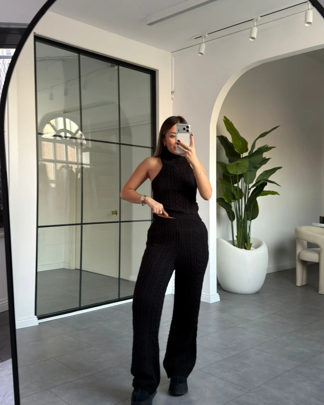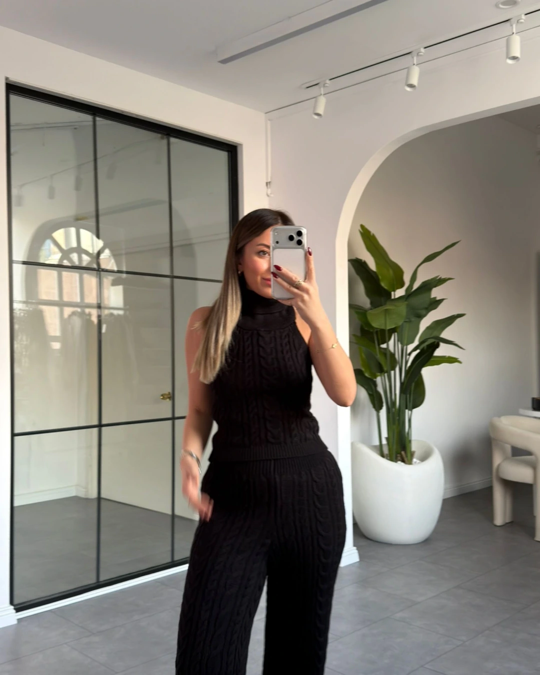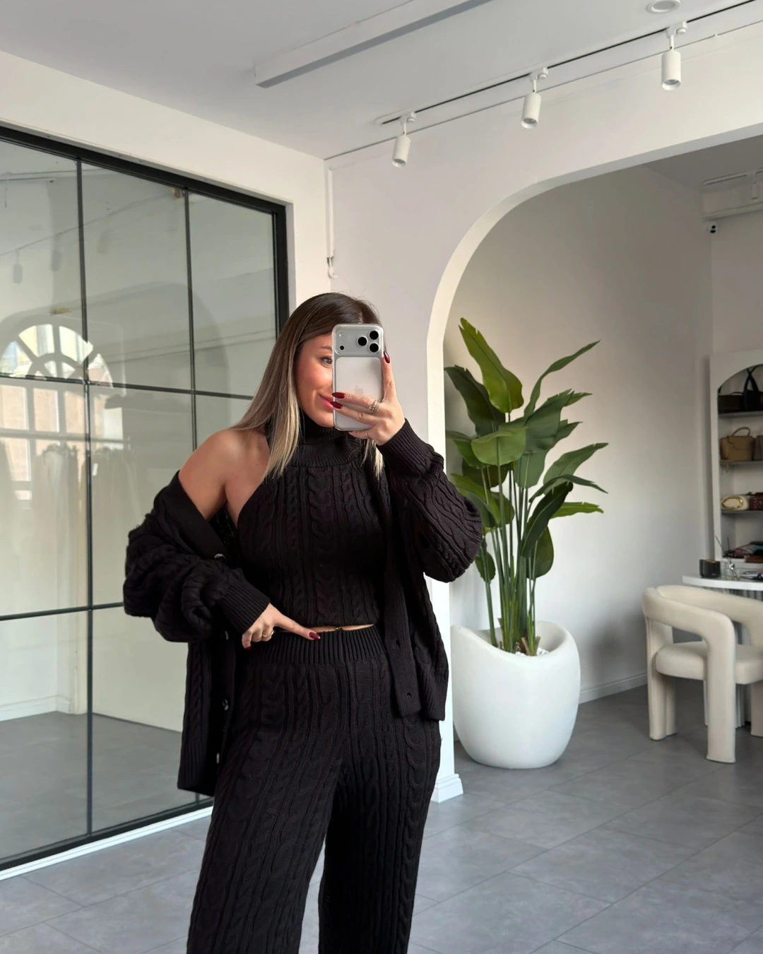 SİYAH ÜÇLÜ SAÇ ÖRGÜ DESEN TRİKO TAKIM