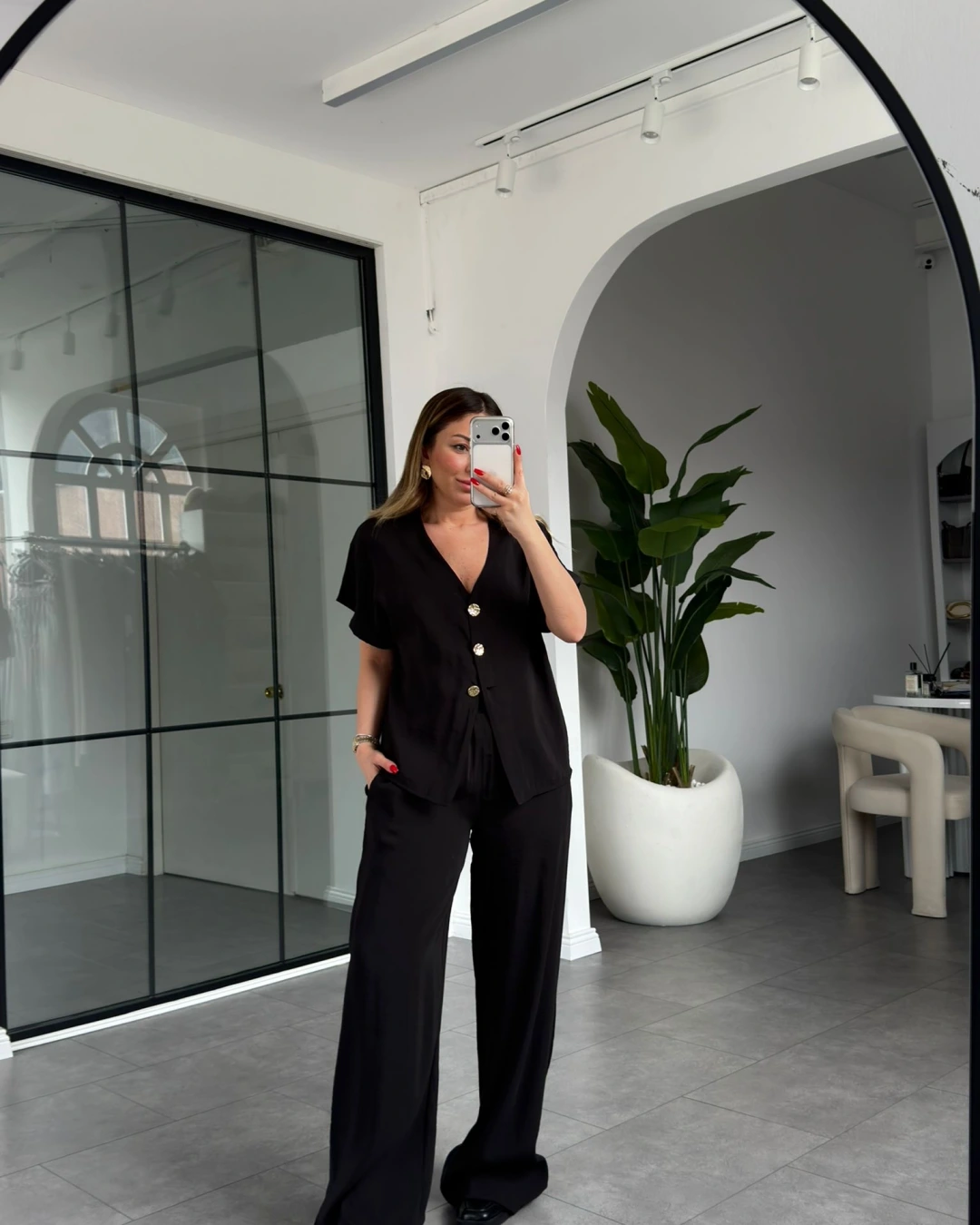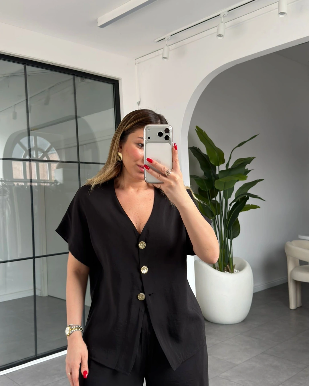 SİYAH V YAKA DÜĞMELİ MODAL TAKIM 9521