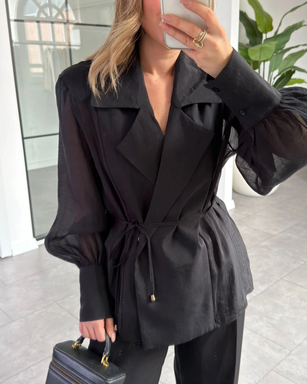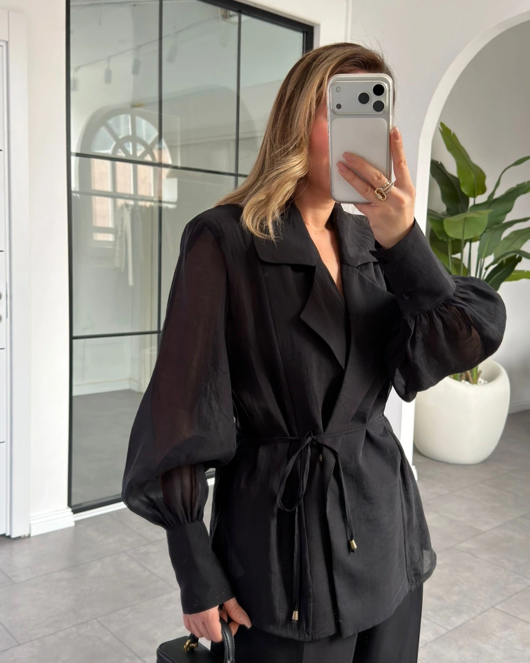SİYAH VATKALI KİMONO GÖMLEK 5029