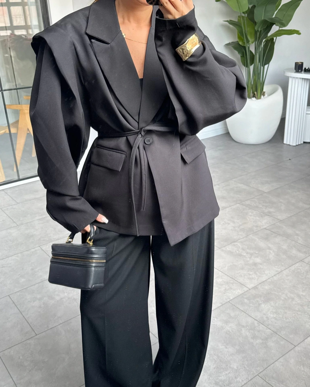 SİYAH VATKALI TASARIM CEKET