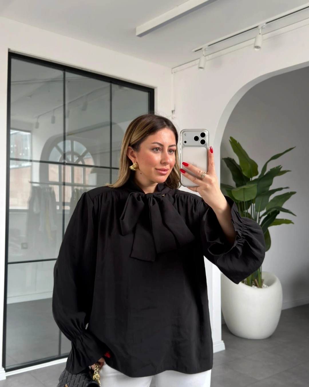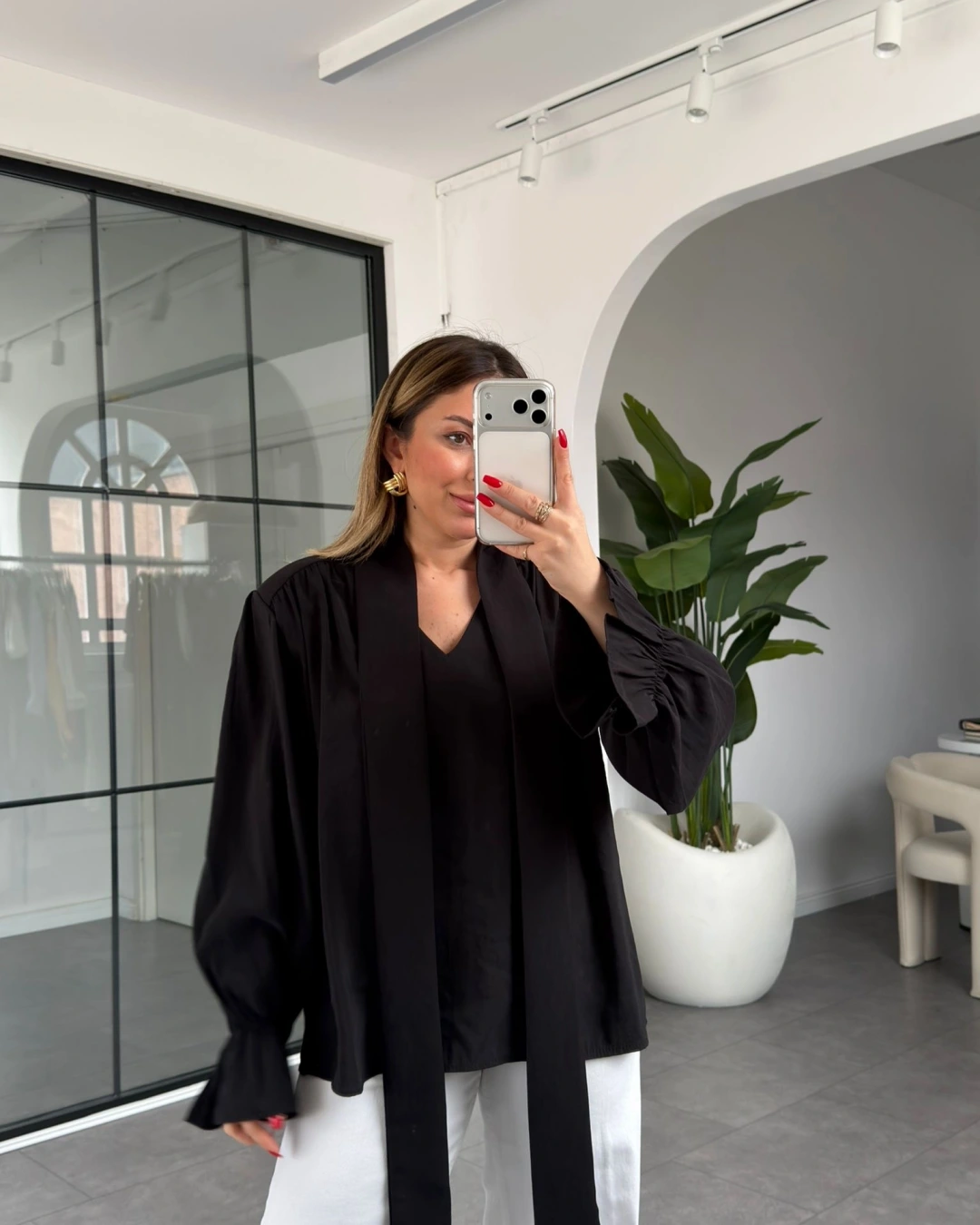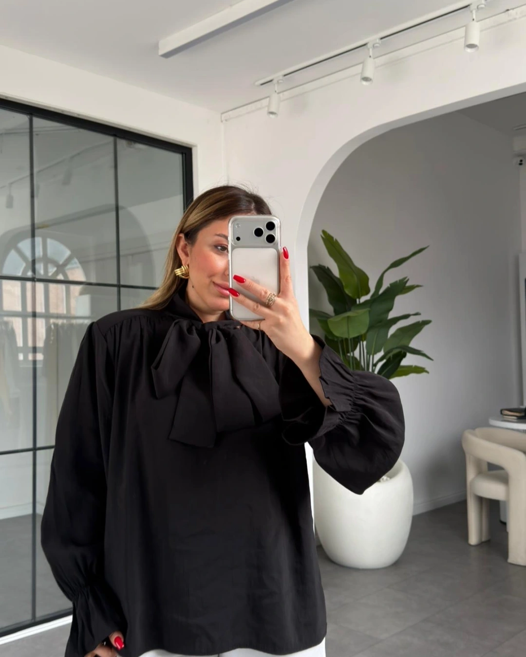 SİYAH YAKASI BAĞLAMALI VATKALI BLUZ 1016
