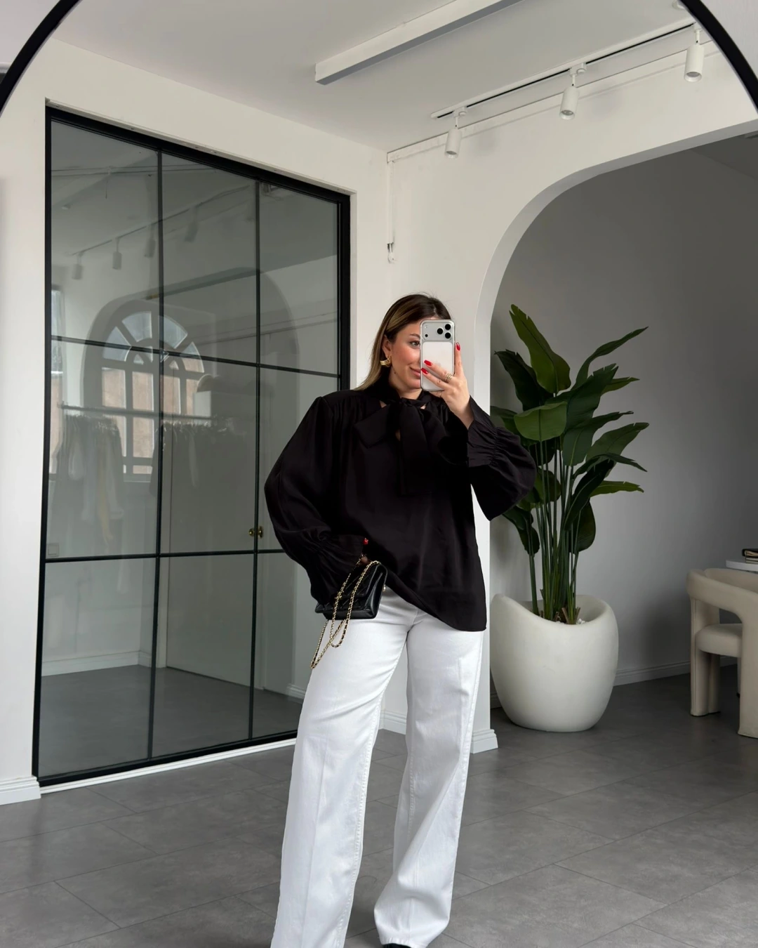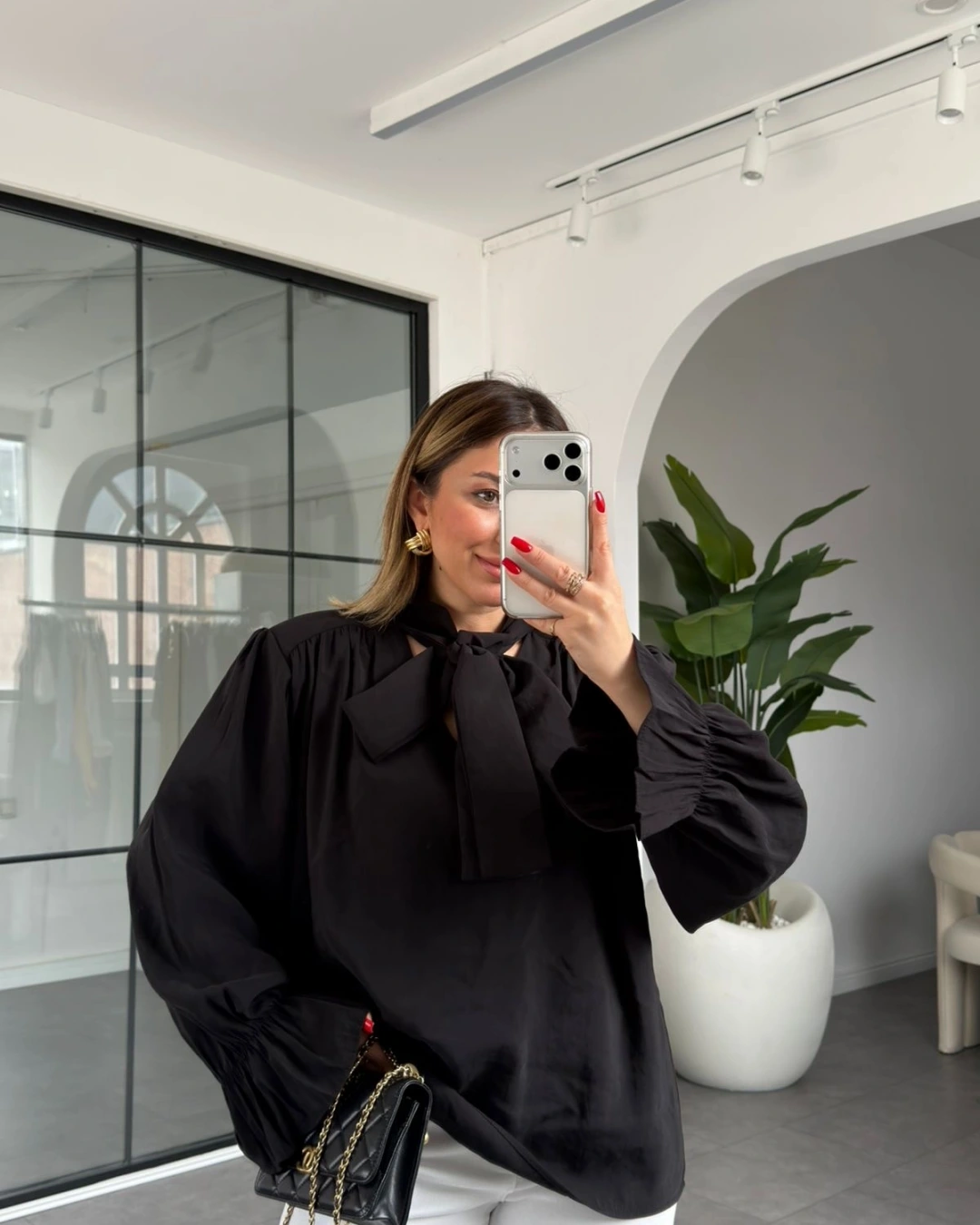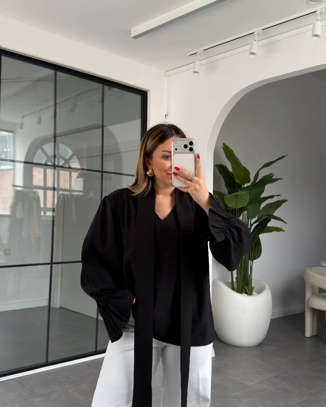 SİYAH YAKASI BAĞLAMALI VATKALI BLUZ 1016