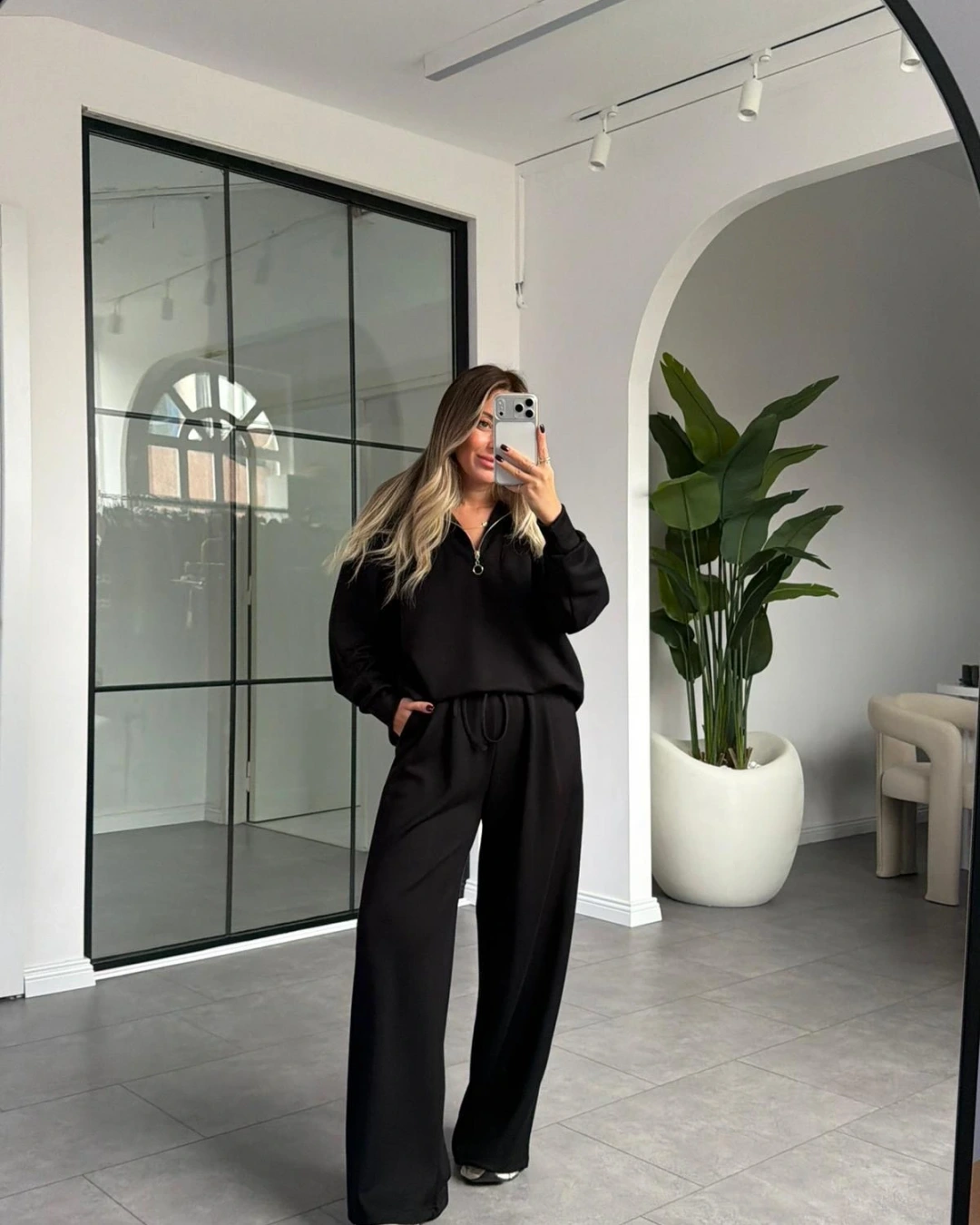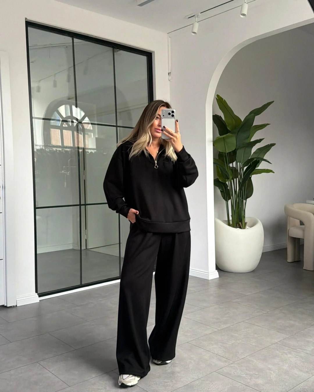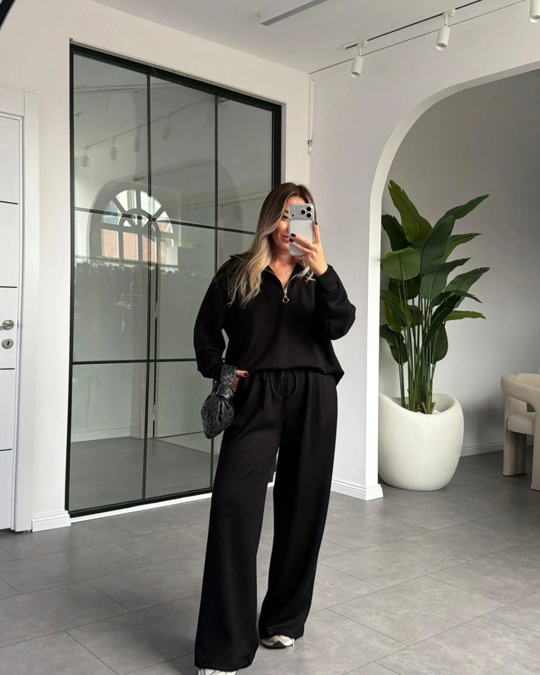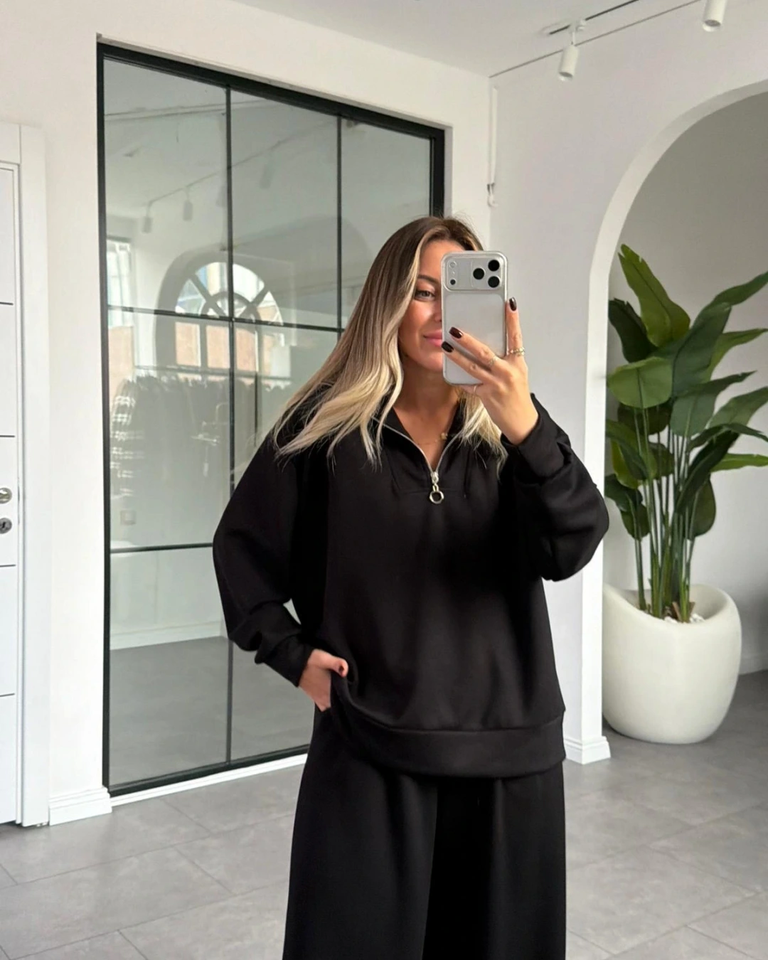 SİYAH YARIM FERMUARLI MODAL TAKIM