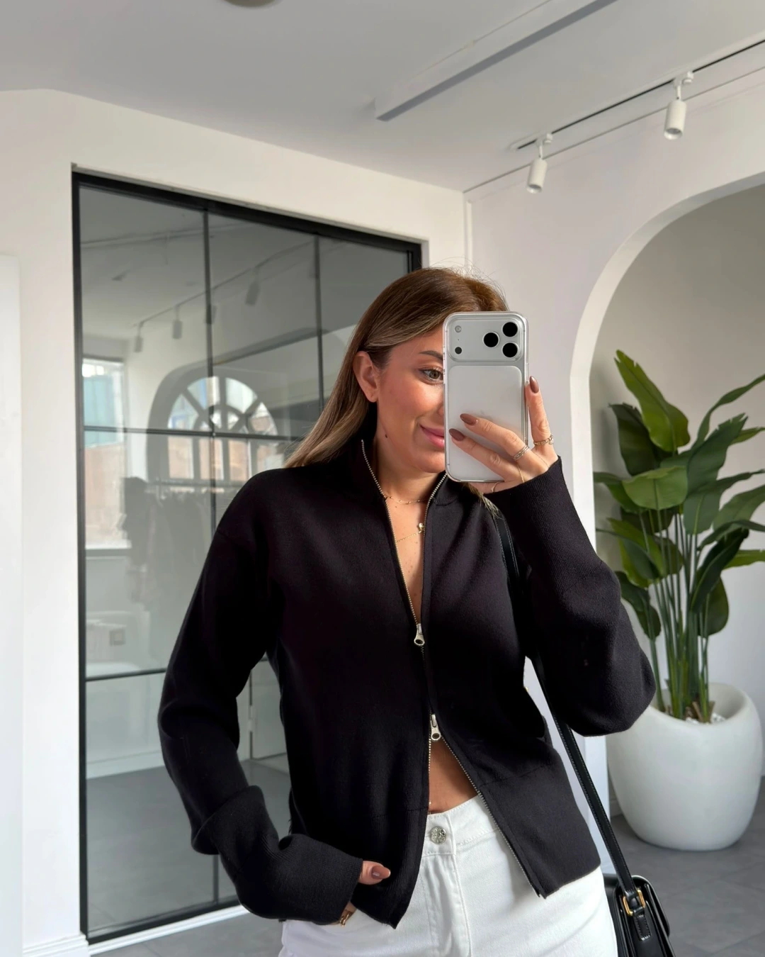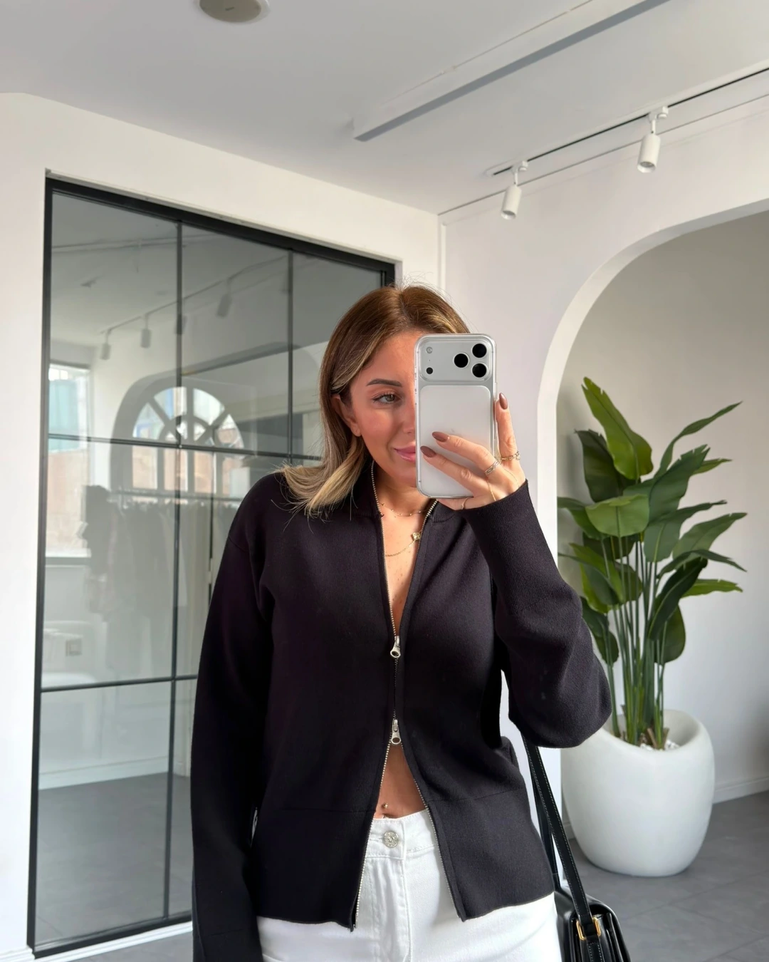 SİYAH YUMUŞACIK DOKULU ÇİFT FERMUARLI HIRKA