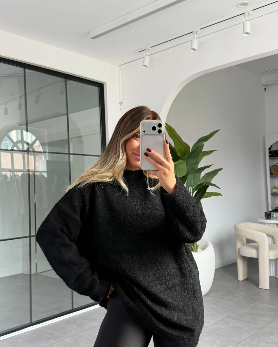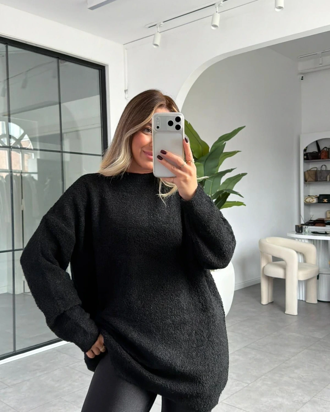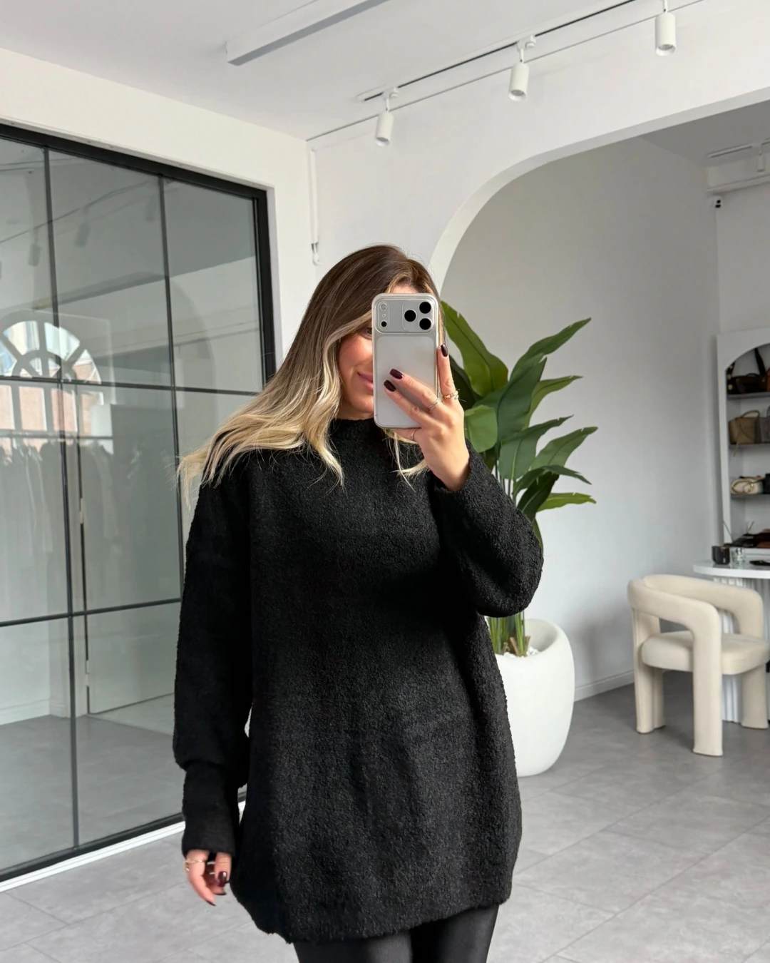 SİYAH YUMUŞACIK DOKULU TRİKO BASİC KAZAK