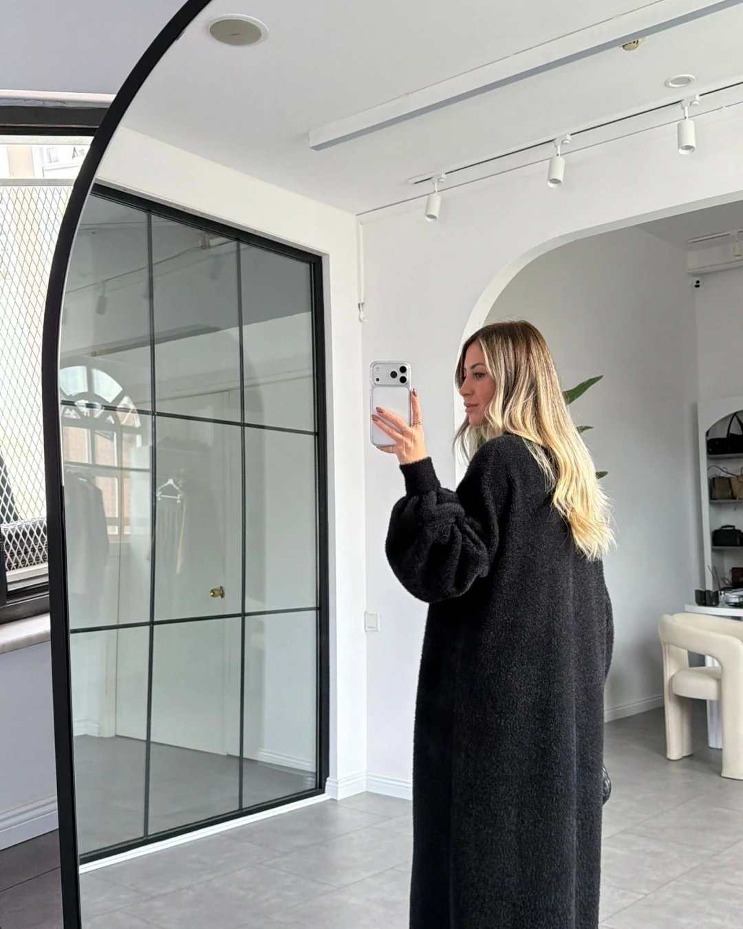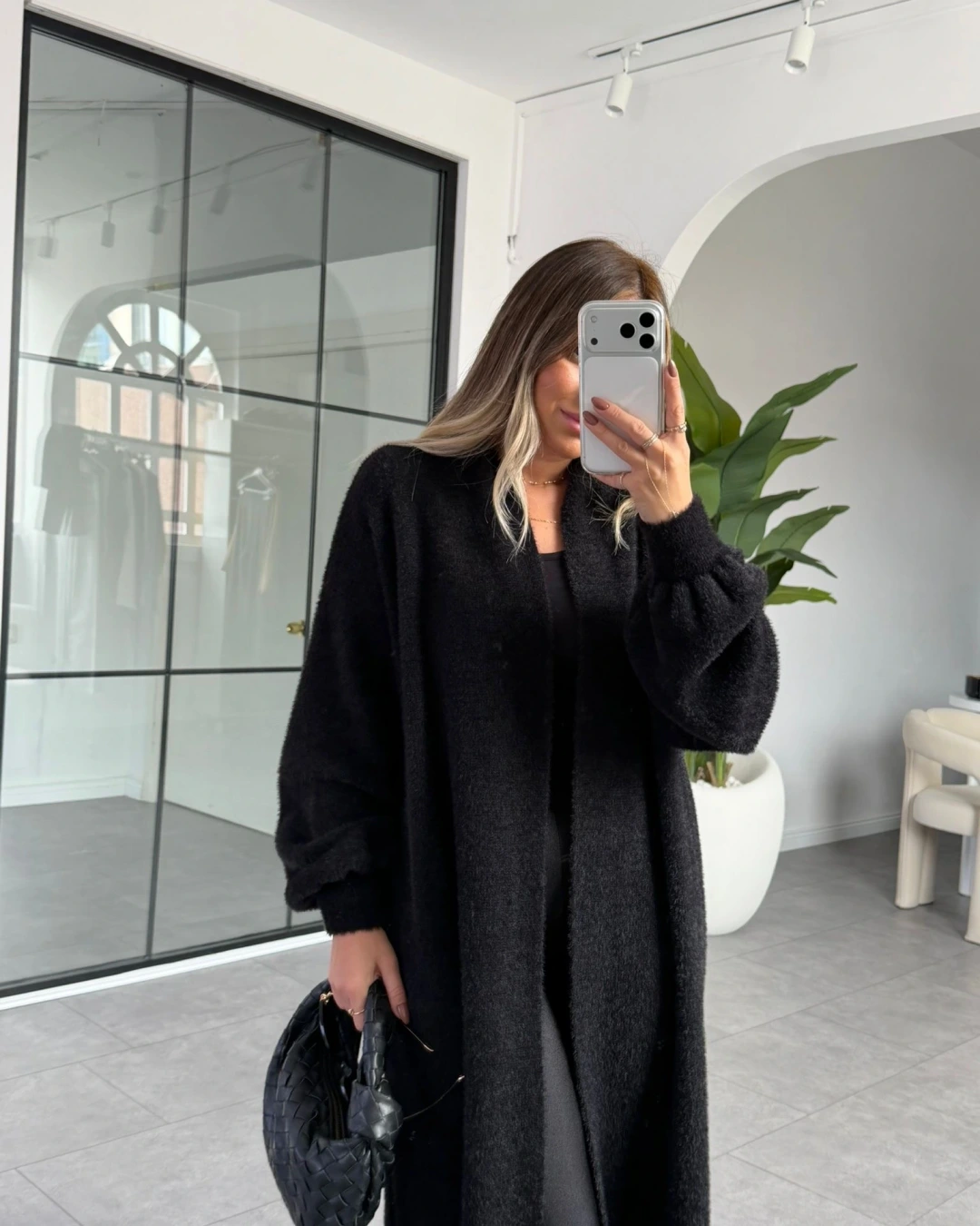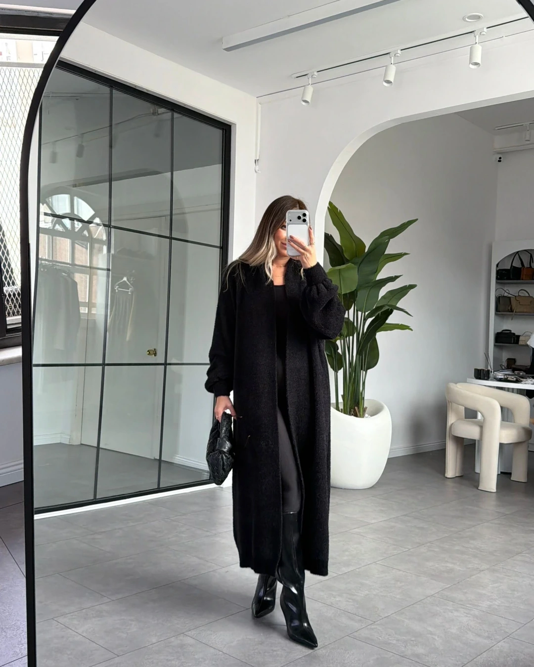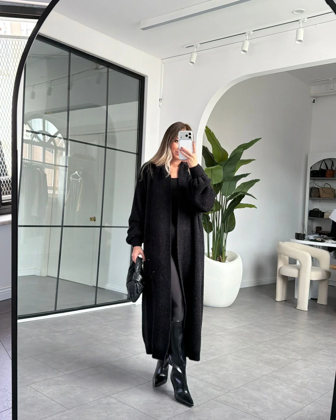 SİYAH YUMUŞACIK DOKULU UZUN HIRKA