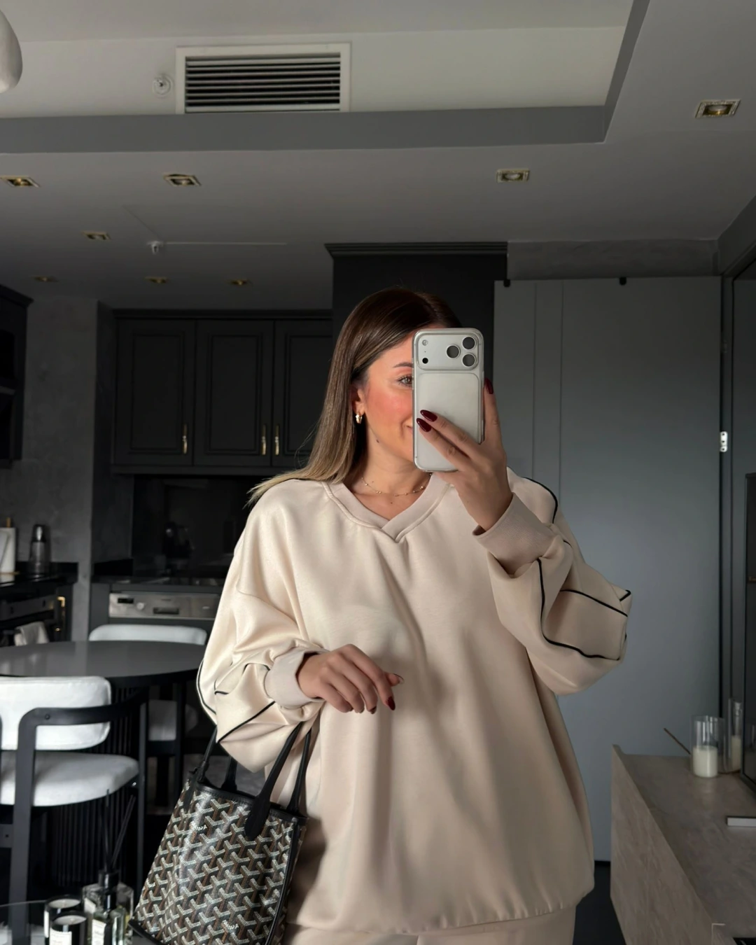 TAŞ ÇİFT ŞERİT DETAYLI MODAL TAKIM