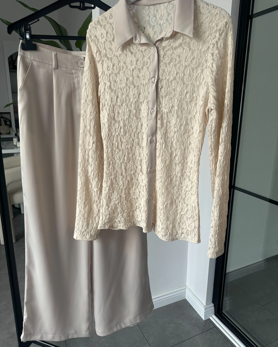 TAŞ DANTEL GÖMLEK SATEN PANTOLON TAKIM 60625