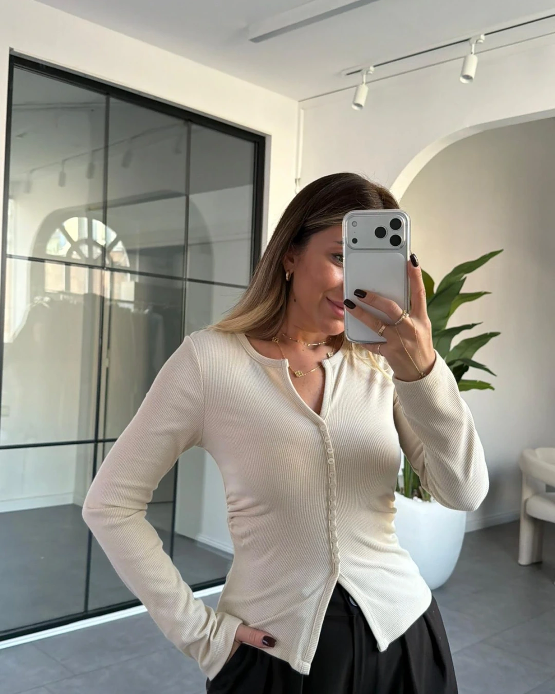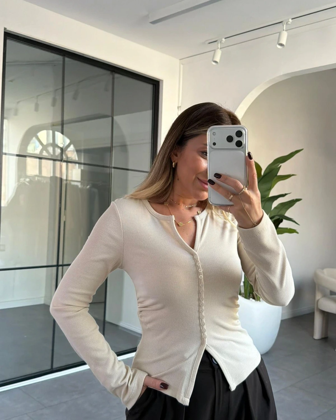 TAŞ DİLVİN DÜĞME DETAYLI BLUZ