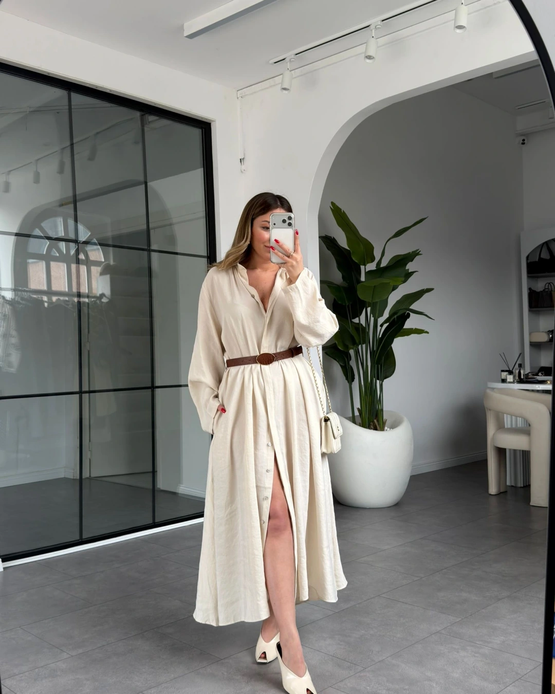 TAŞ KEMERLİ PREMİUM KALİTE MODAL GÖMLEK ELBİSE 3270