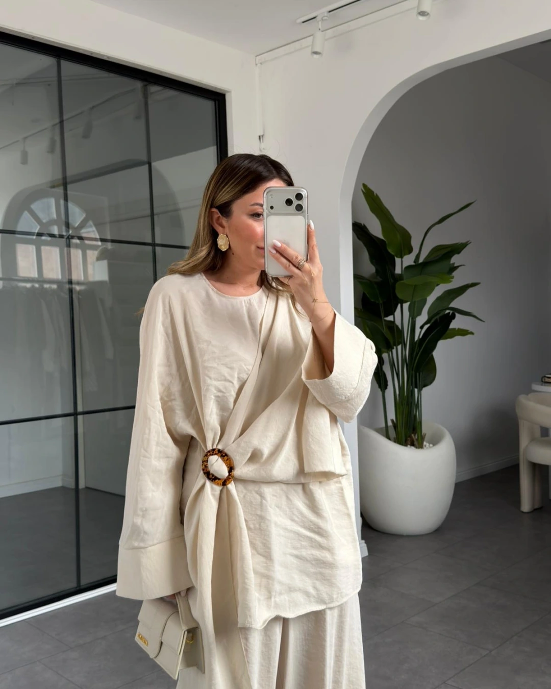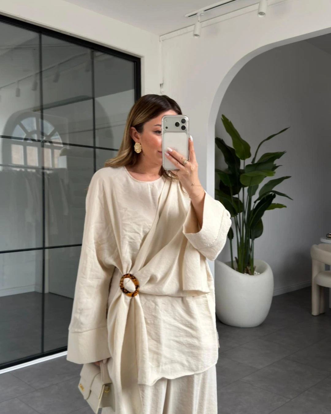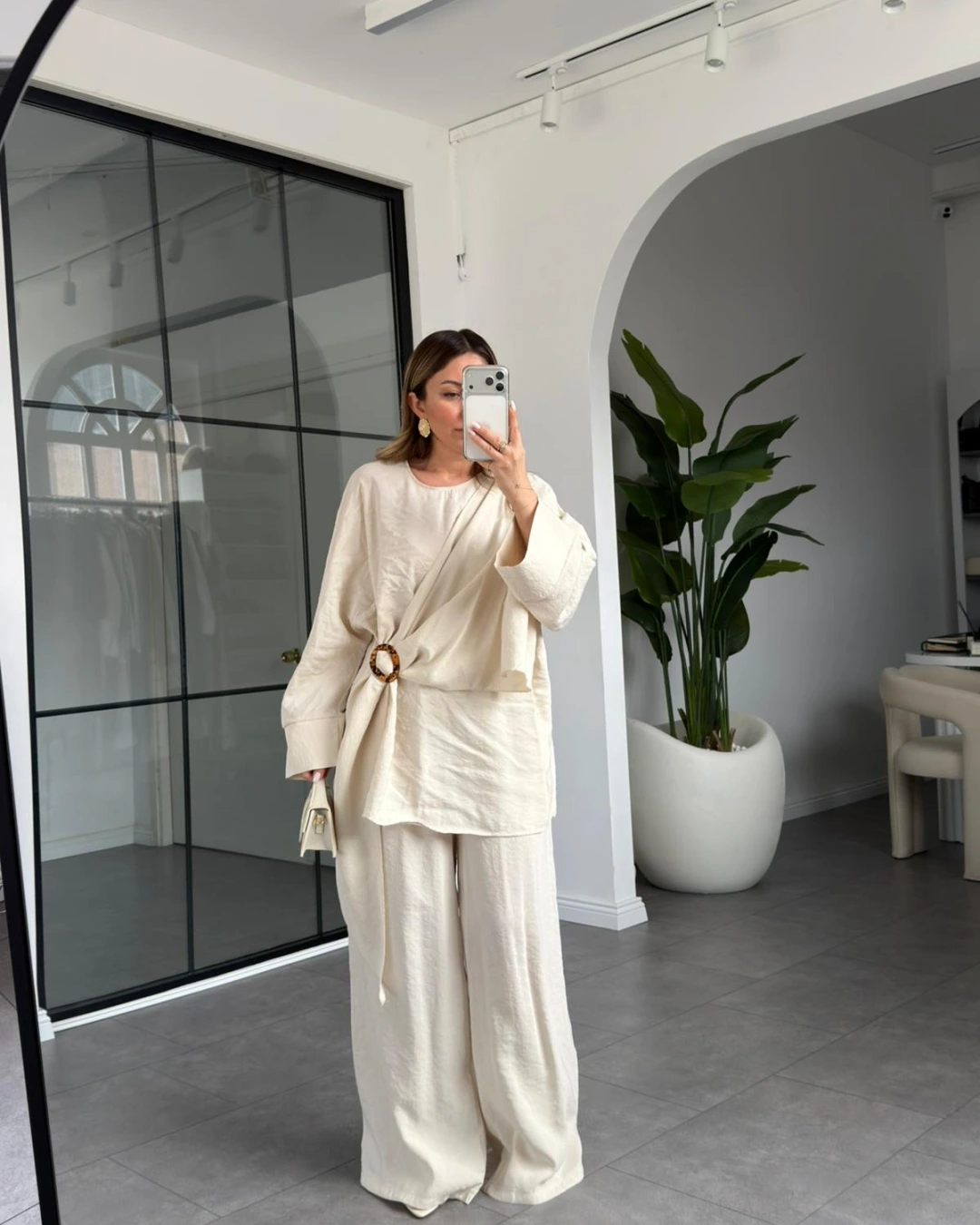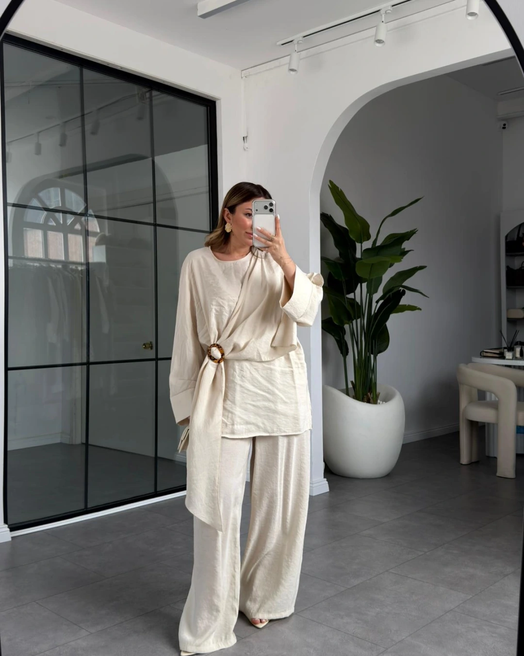 TAŞ KEMİK TOKALI BLUZ PANTOLON TAKIM 51346