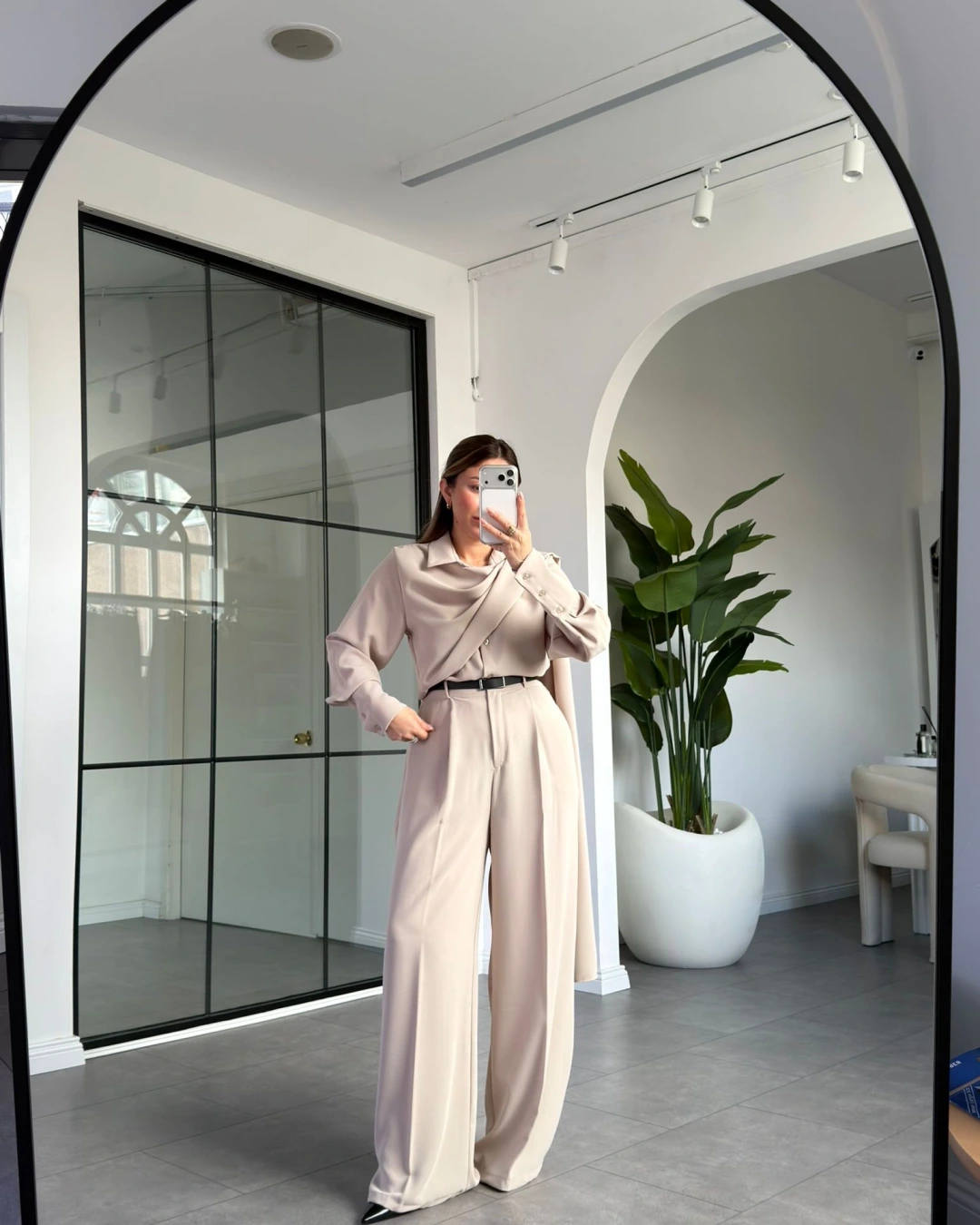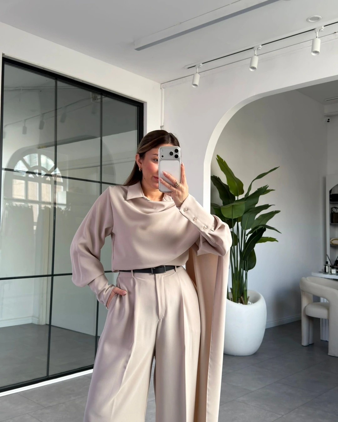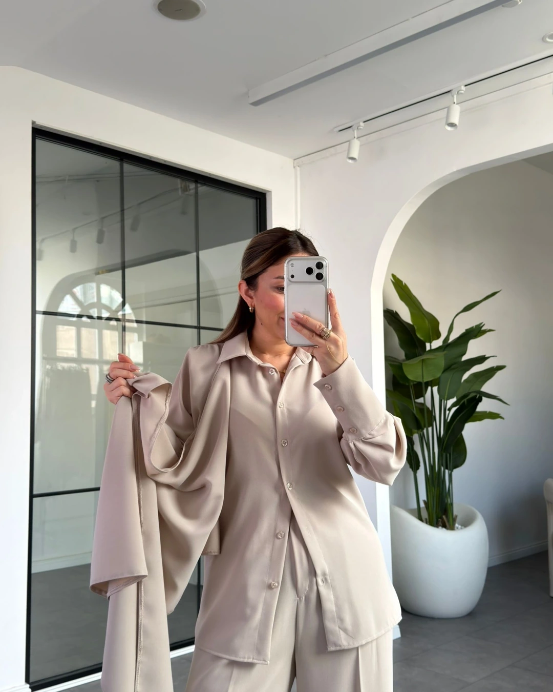 TAŞ ŞAL DETAYLI KEMERLİ GÖMLEK TAKIM