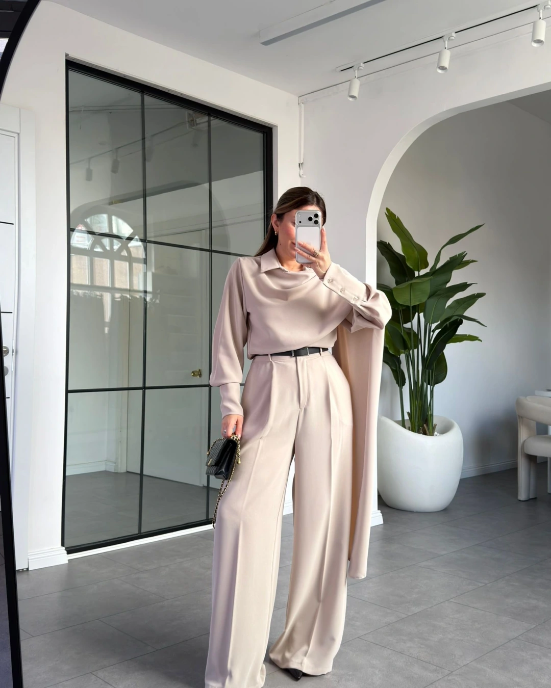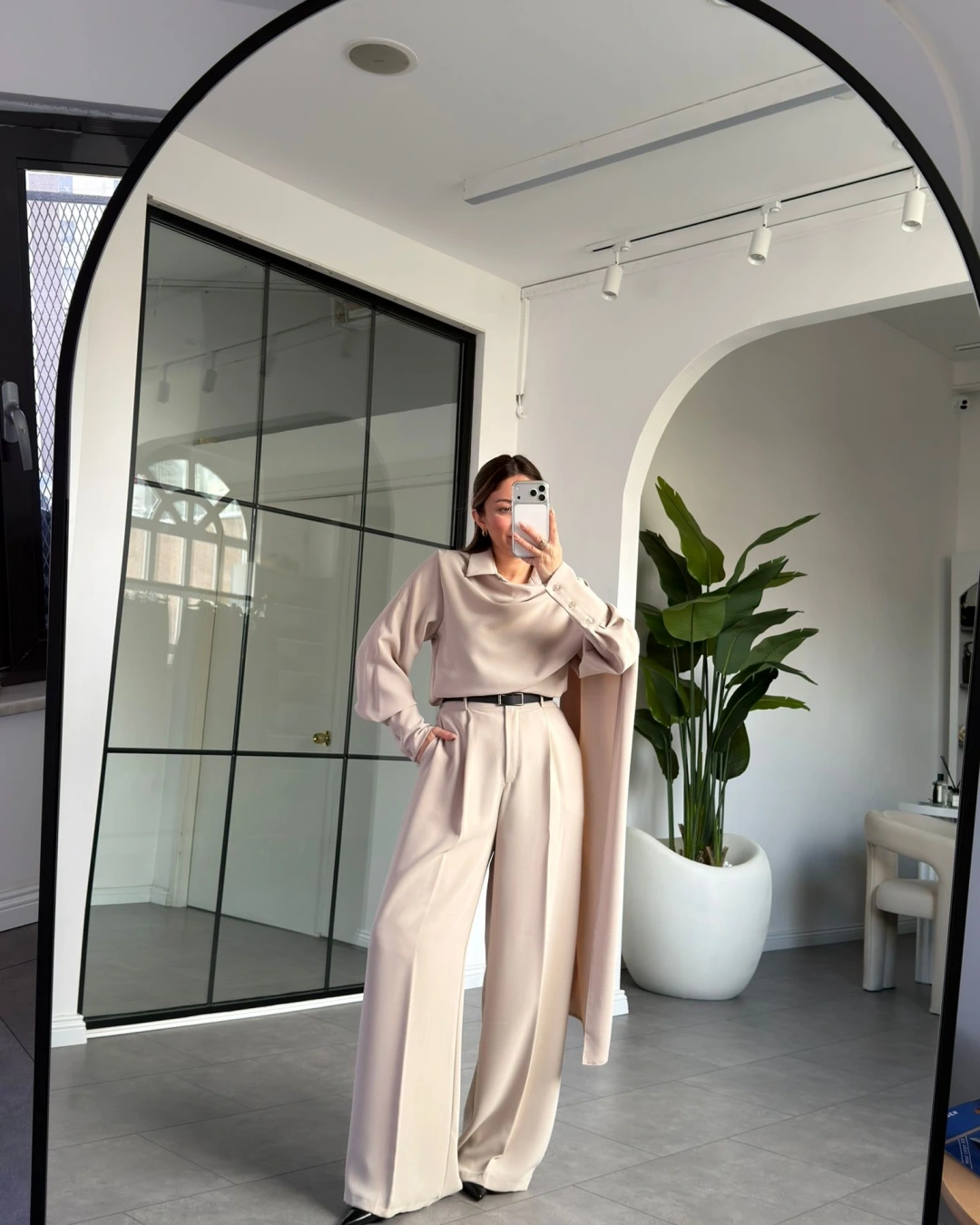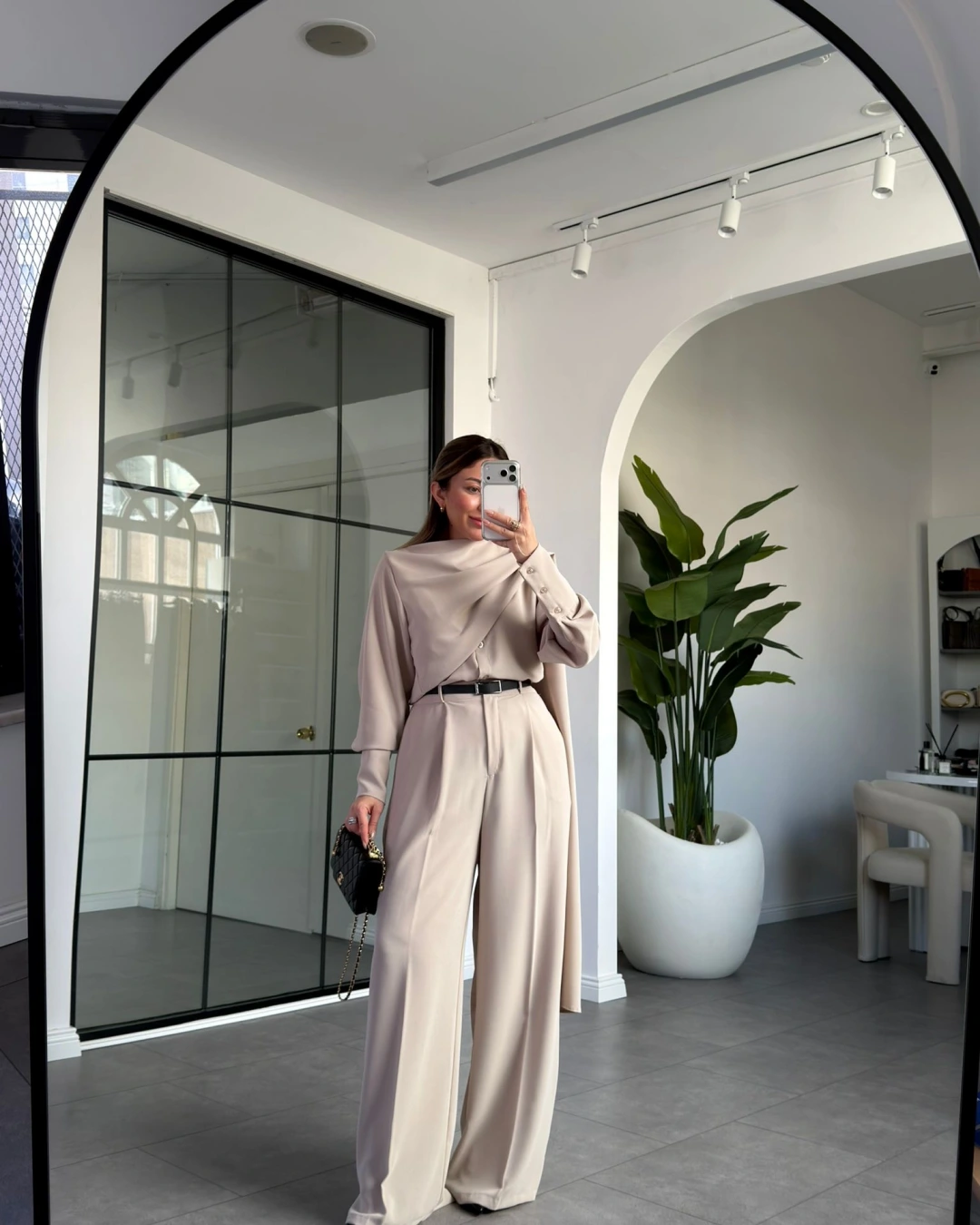TAŞ ŞAL DETAYLI KEMERLİ GÖMLEK TAKIM
