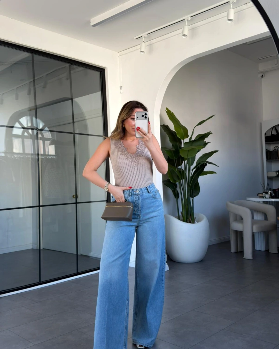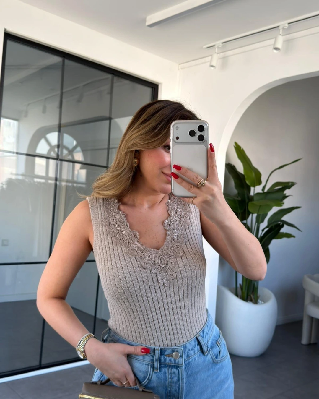 TAŞ V YAKA DANTEL DETAY TRİKO