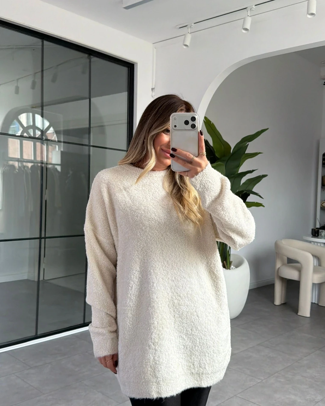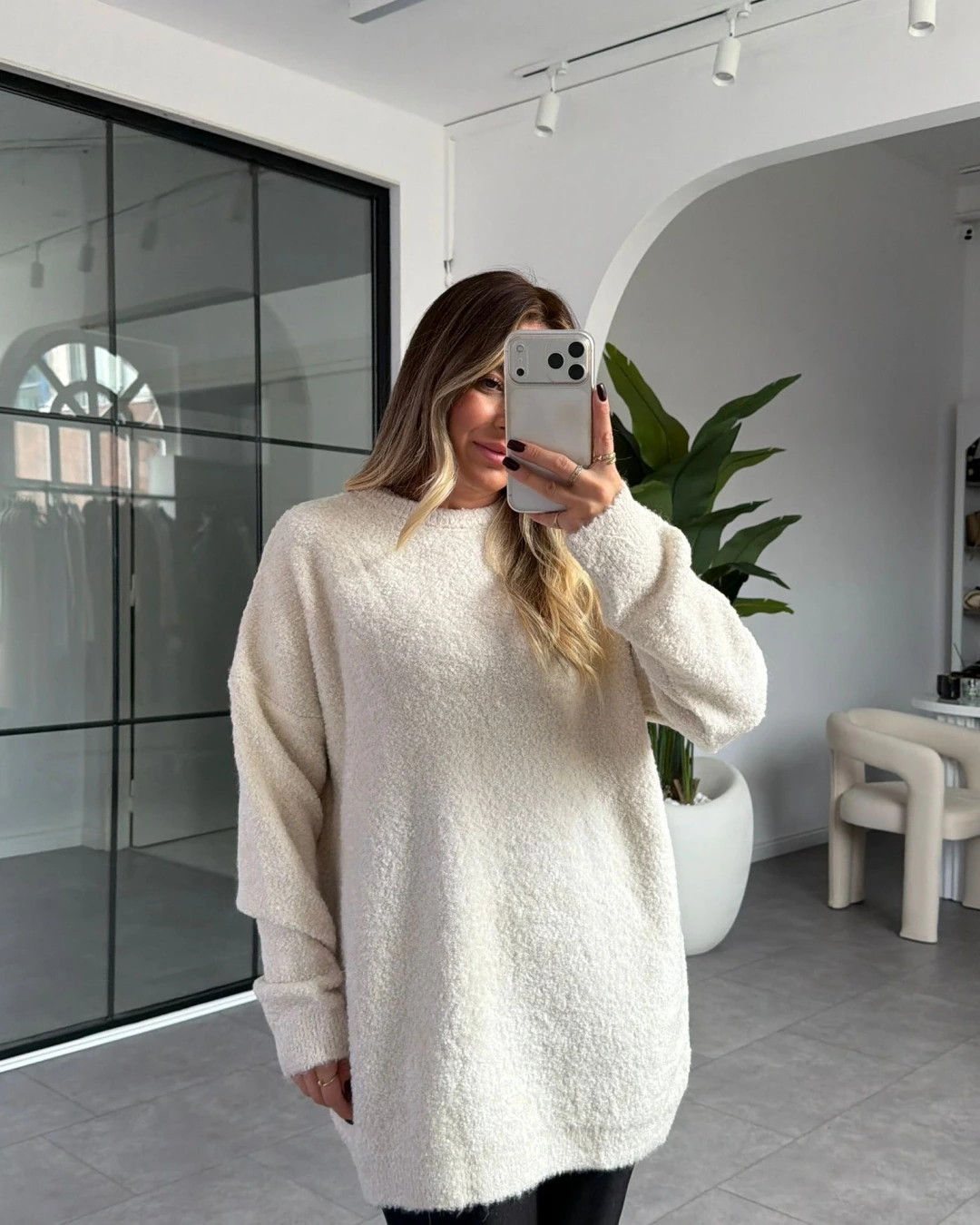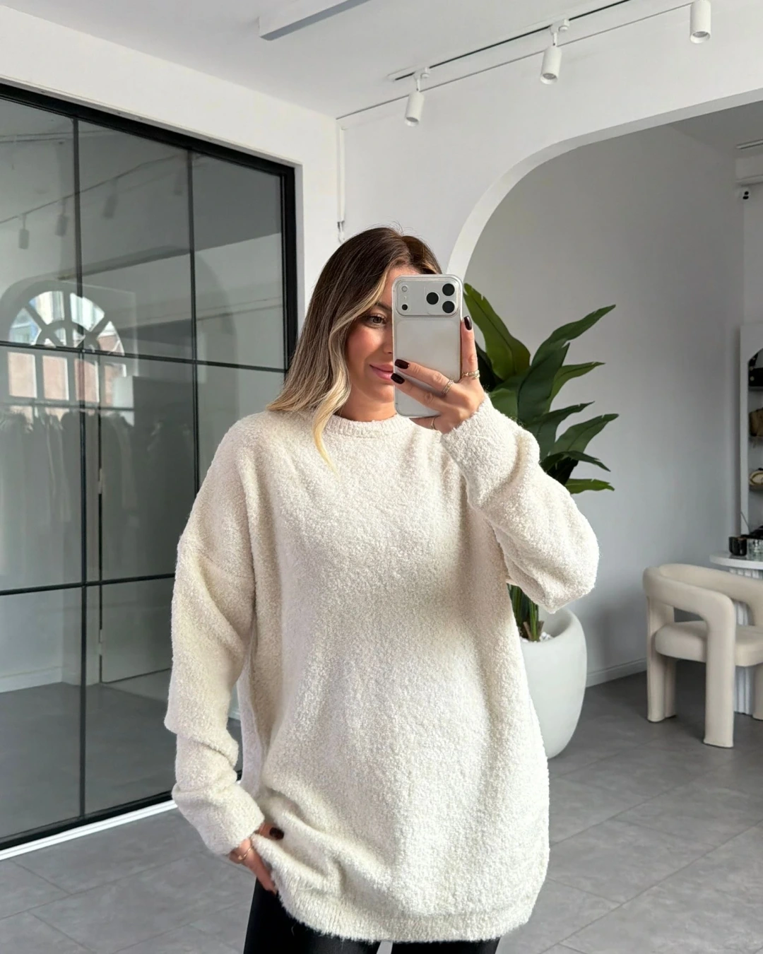 EKRU YUVARLAK YAKA SAÇ ÖRGÜ TRİKO KAZAK