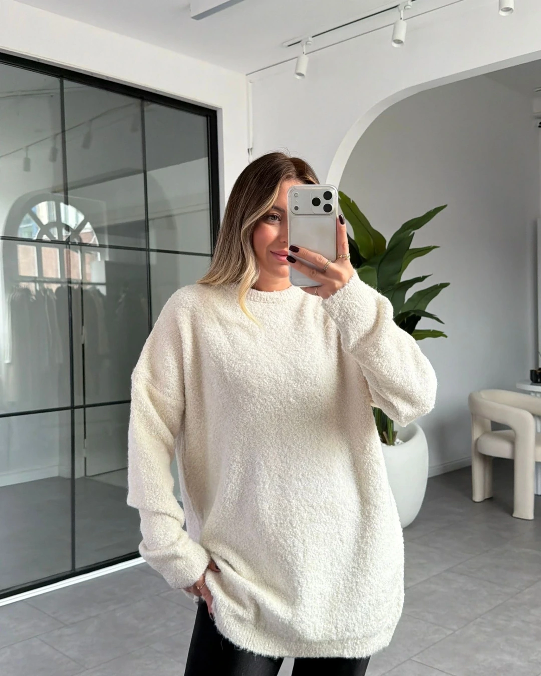 BORDO YUVARLAK YAKA SAÇ ÖRGÜ TRİKO KAZAK