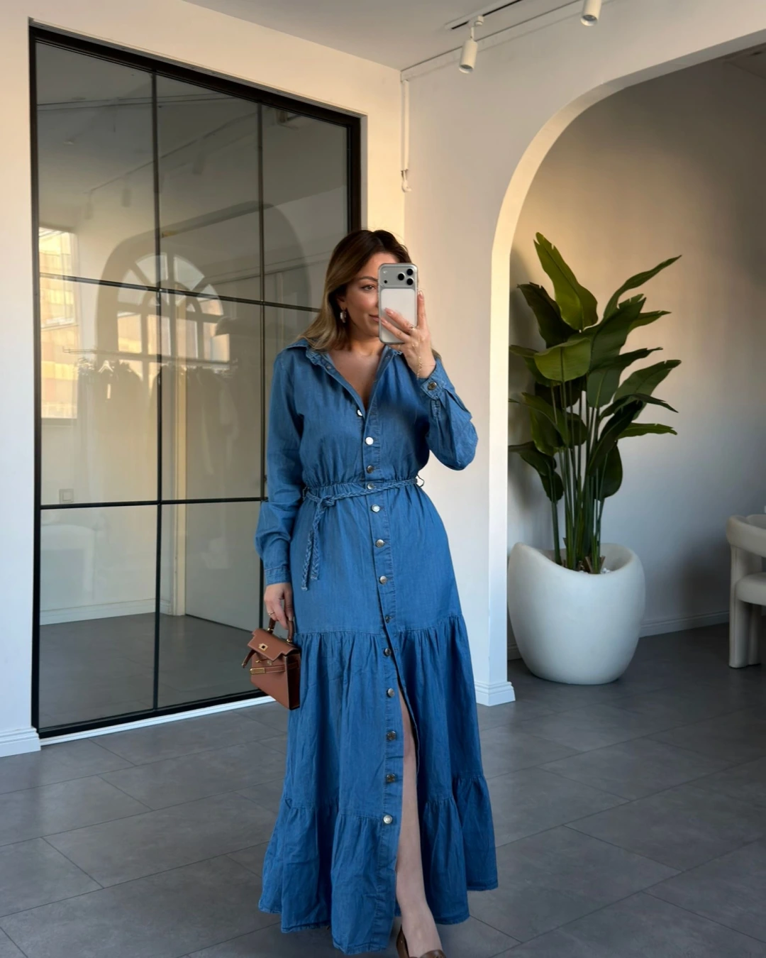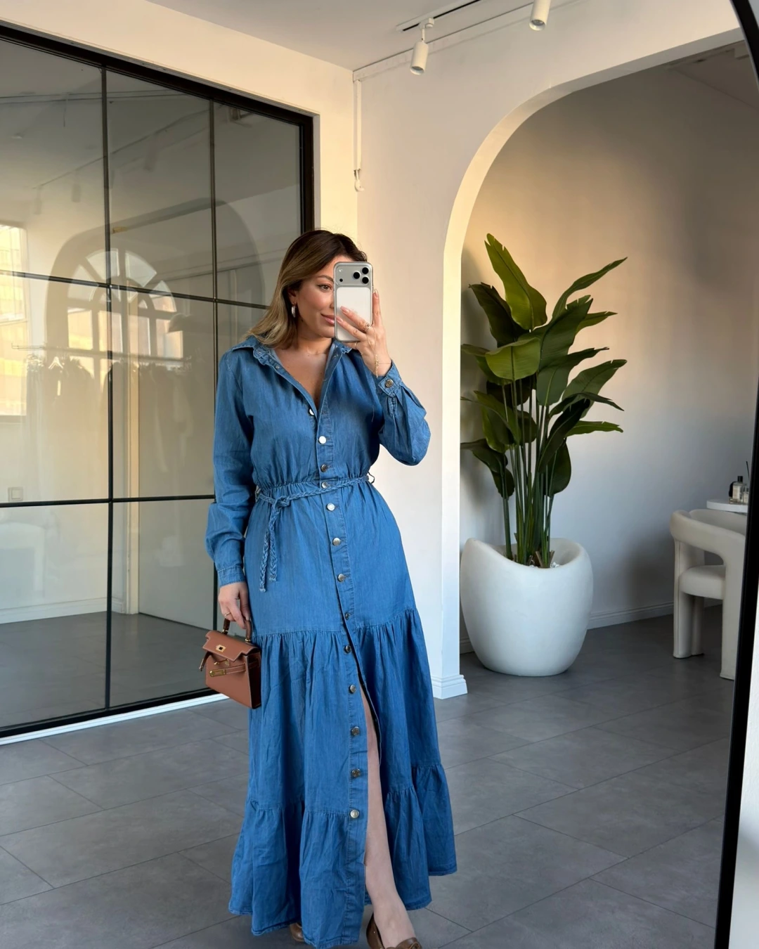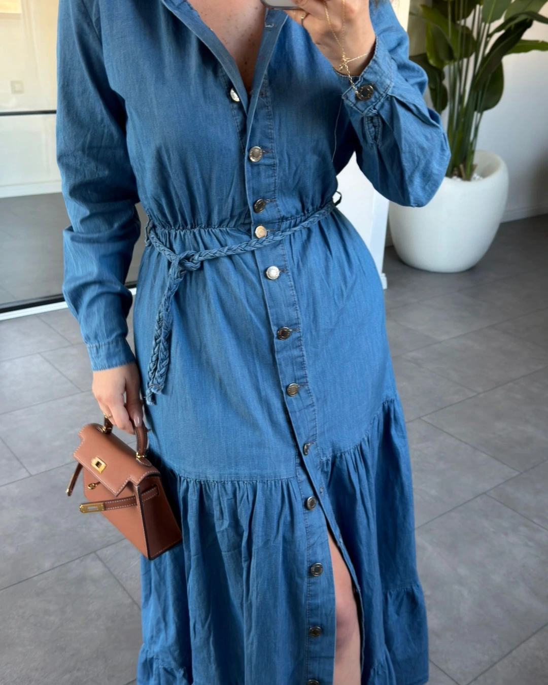 TENCEL DENİM ÖRGÜ KEMERLİ ELBİSE 7572