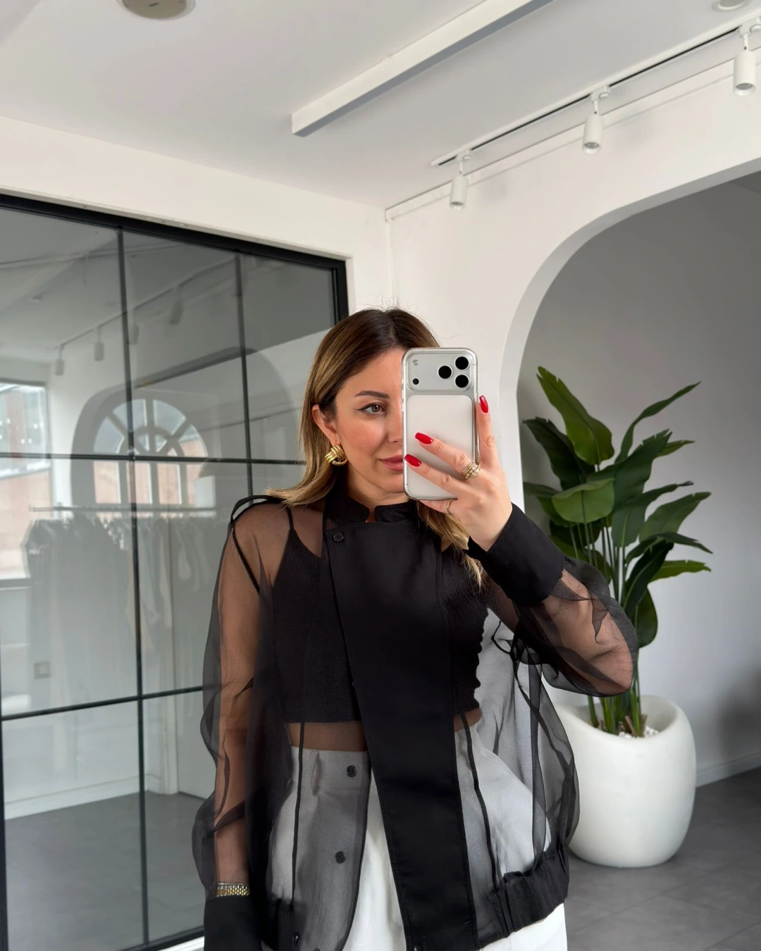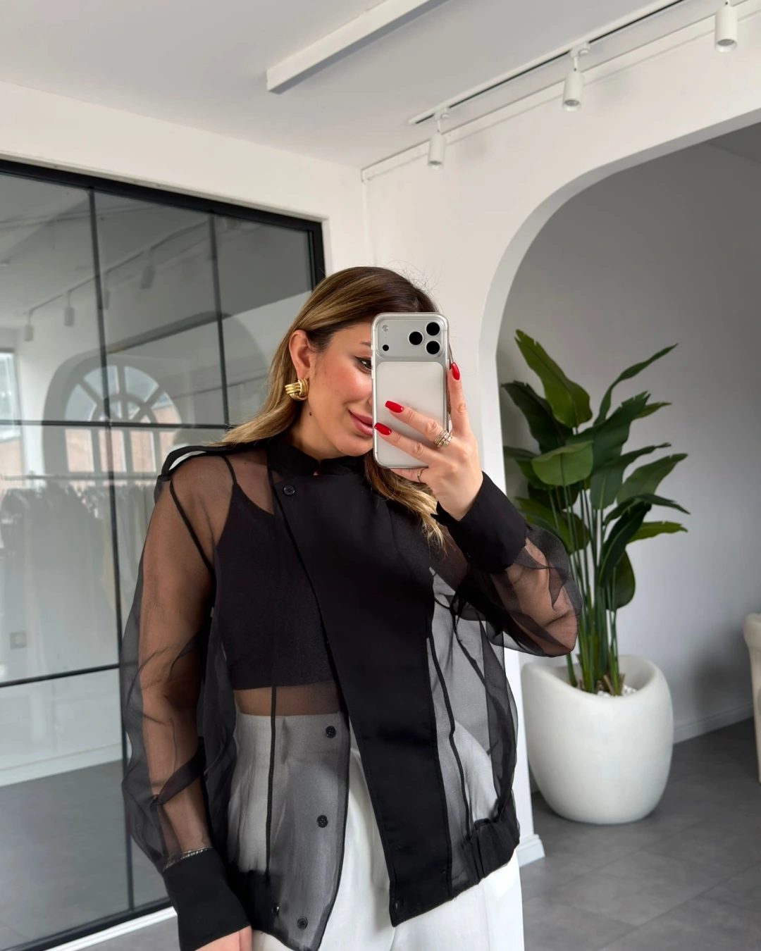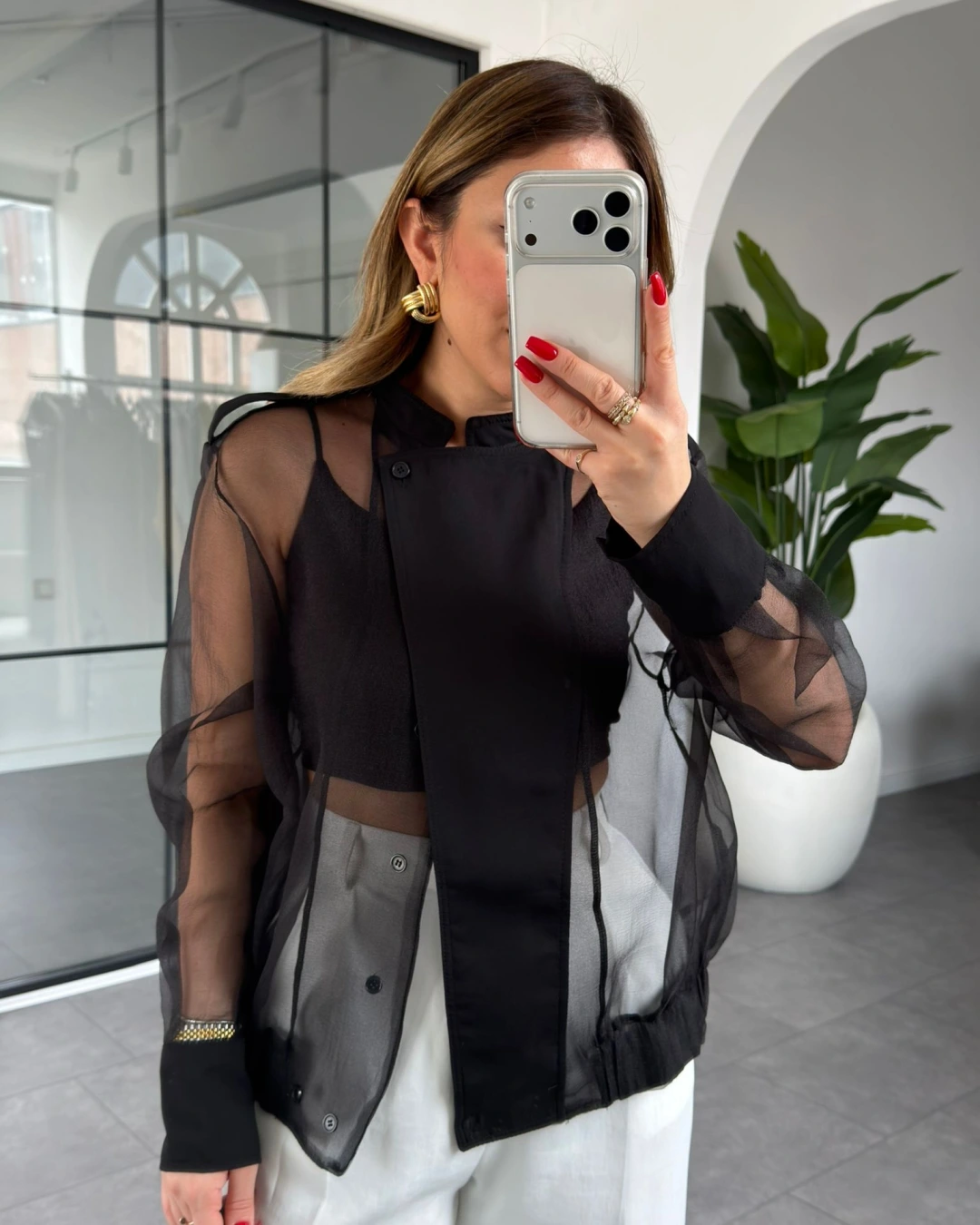 SİYAH ORGANZE BOMBER CEKET