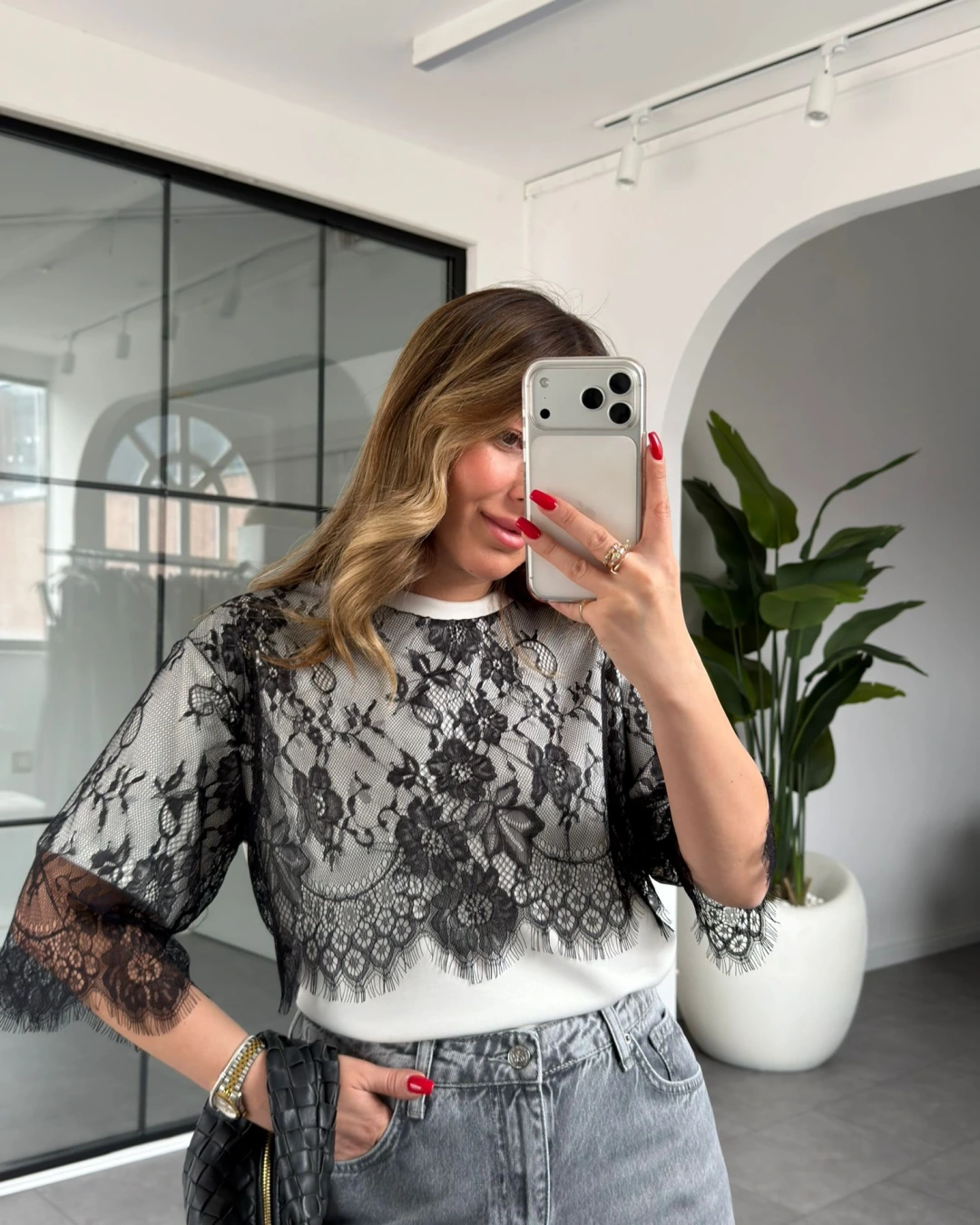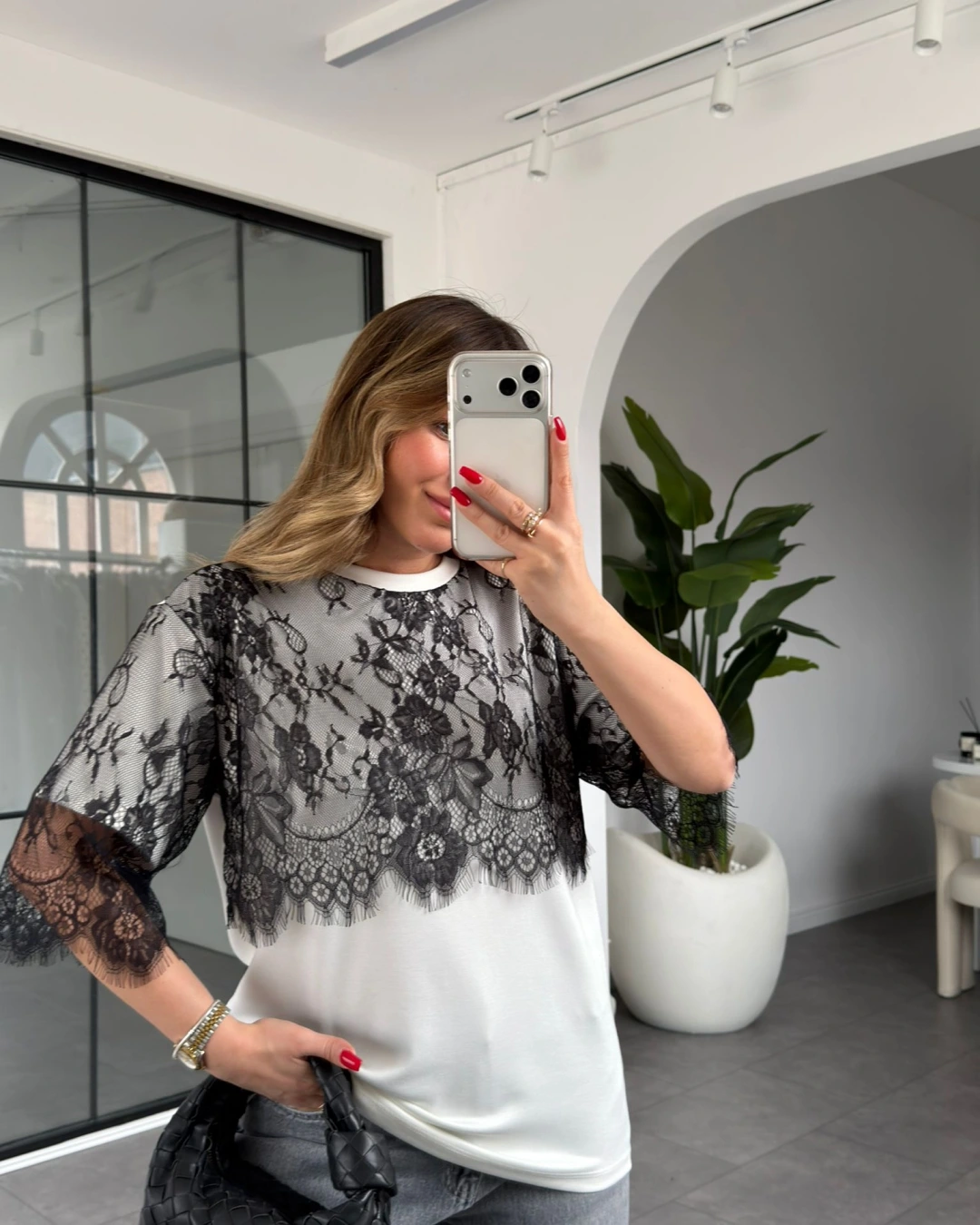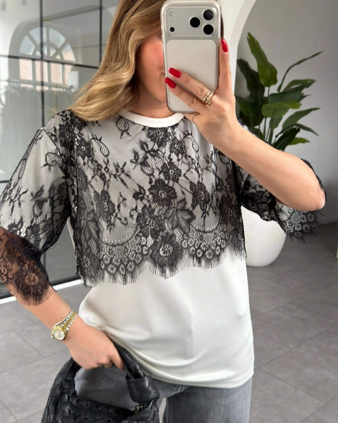 ÜST KISMI DANTEL DETAYLI T-SHİRT