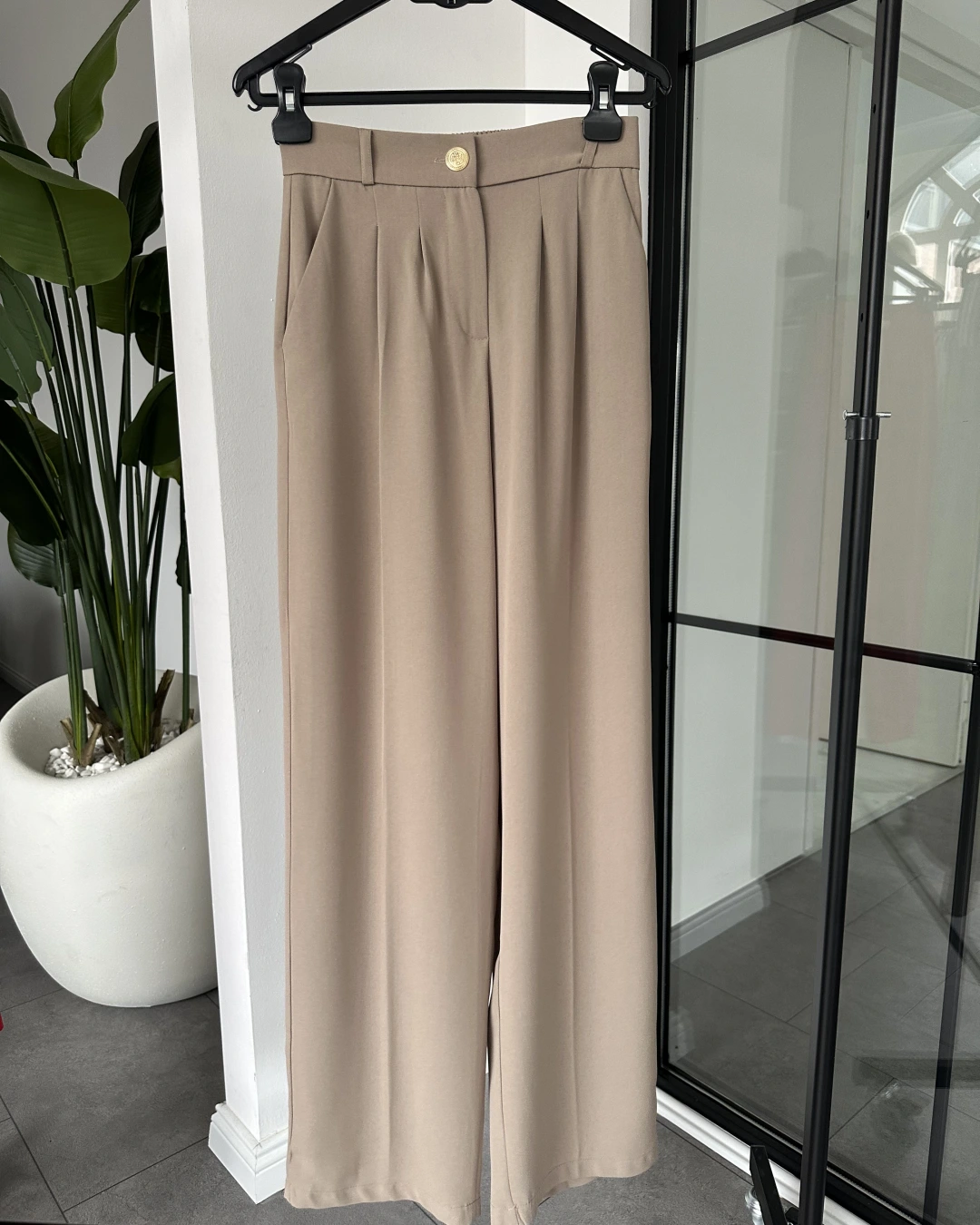 VİZON GOLD DÜĞMELİ PİLELİ PALAZZO PANTOLON