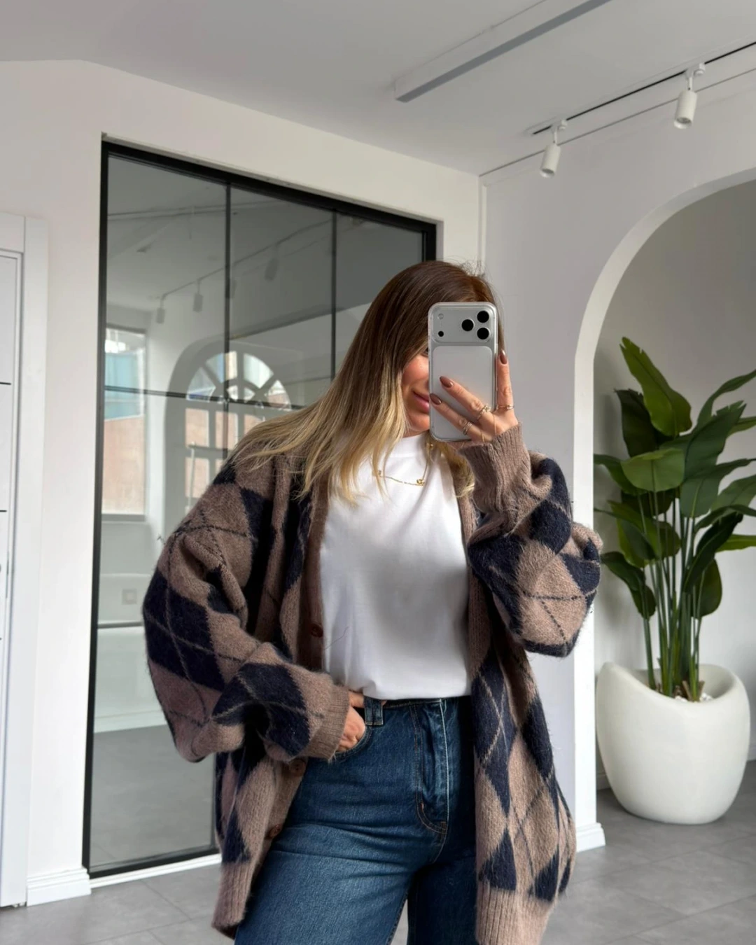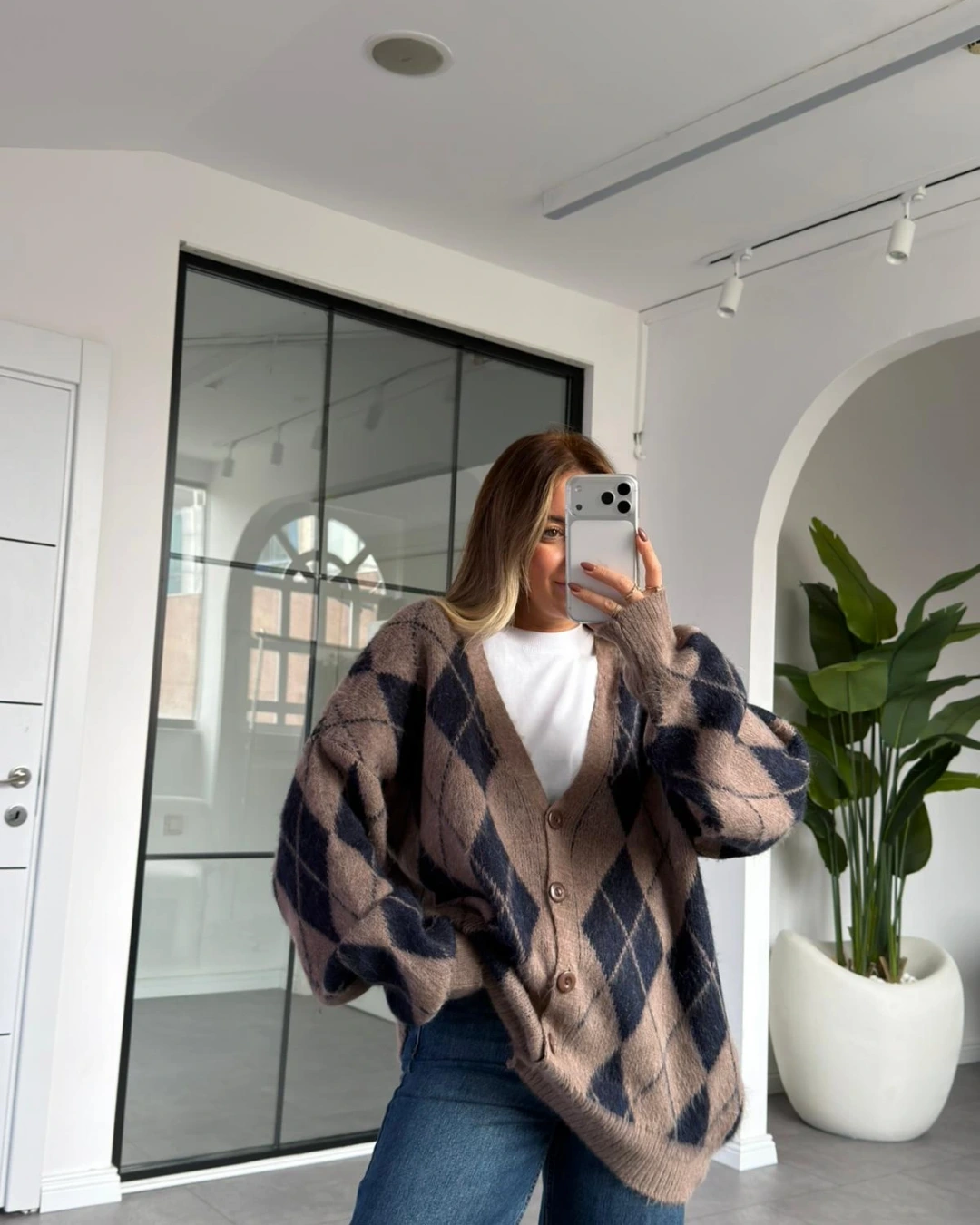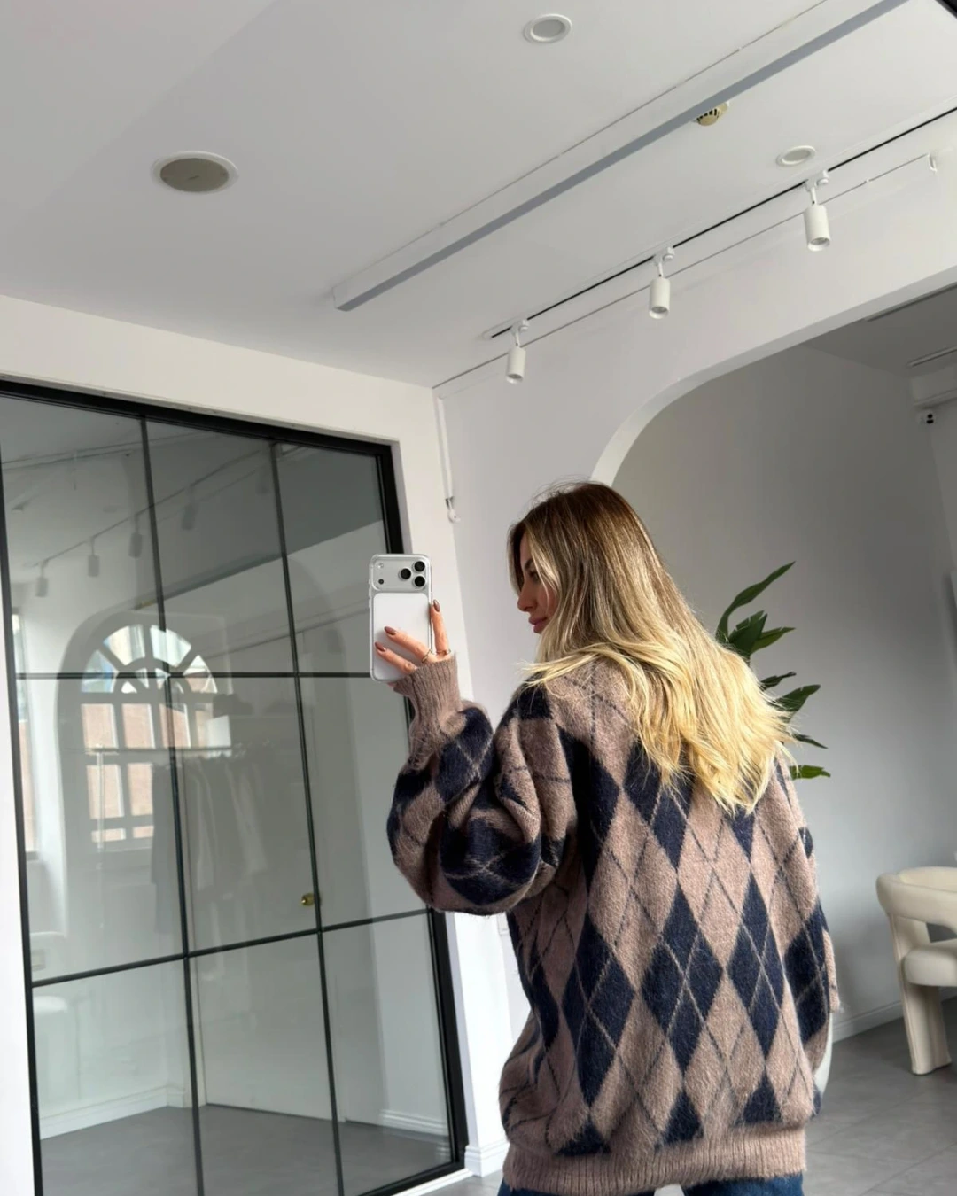 VİZON LACİVERT BAKLAVA DESEN HIRKA