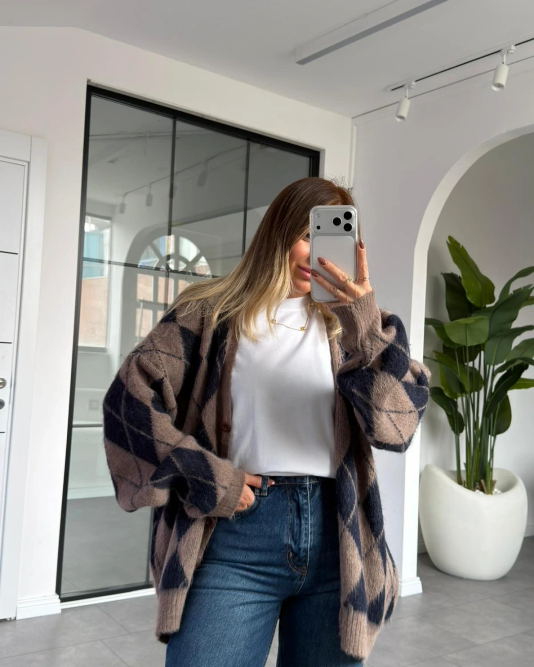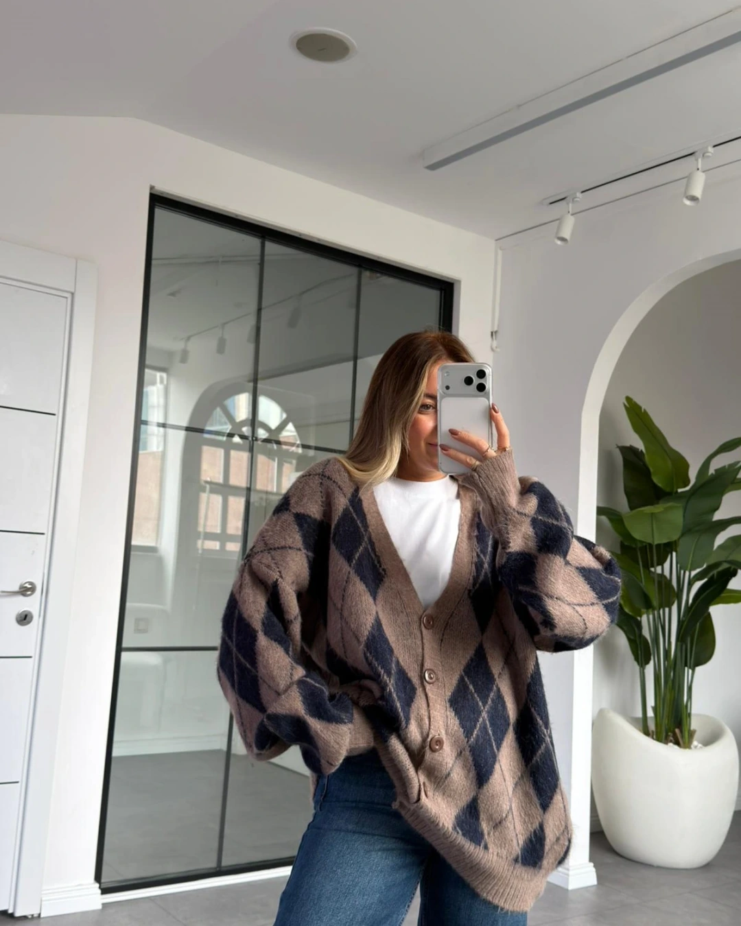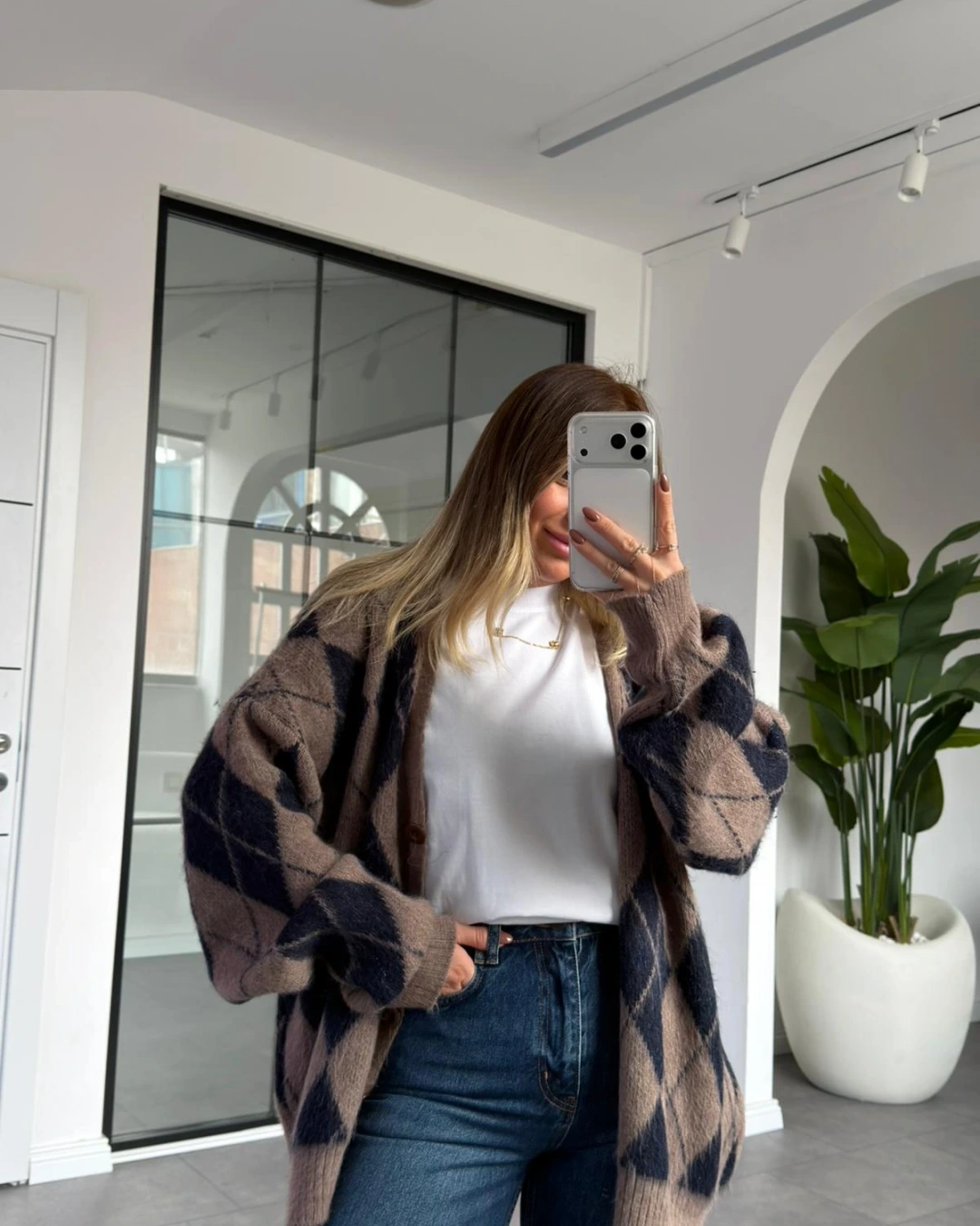 VİZON LACİVERT BAKLAVA DESEN HIRKA