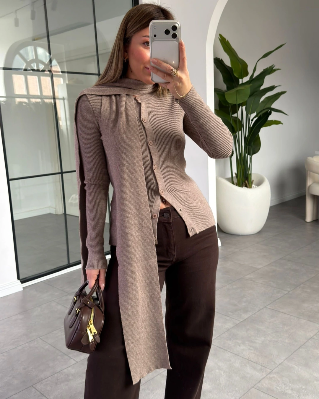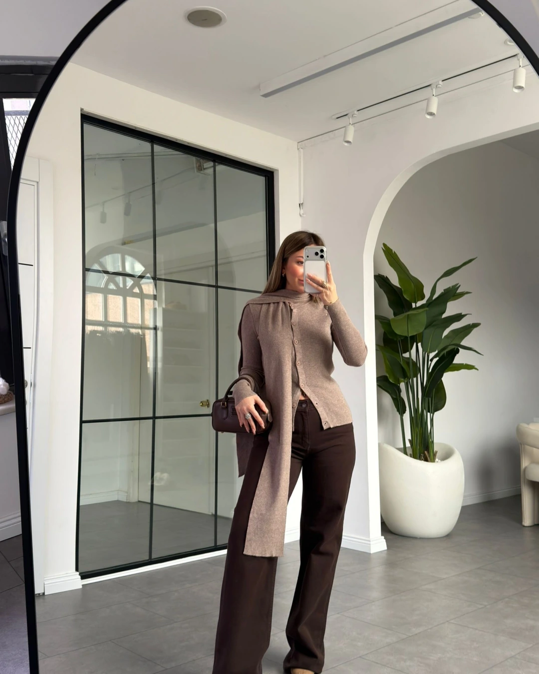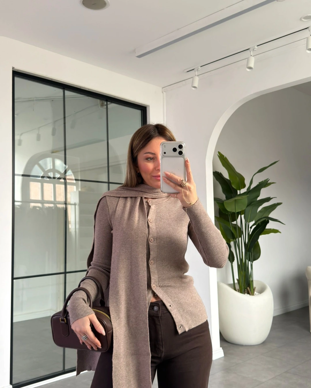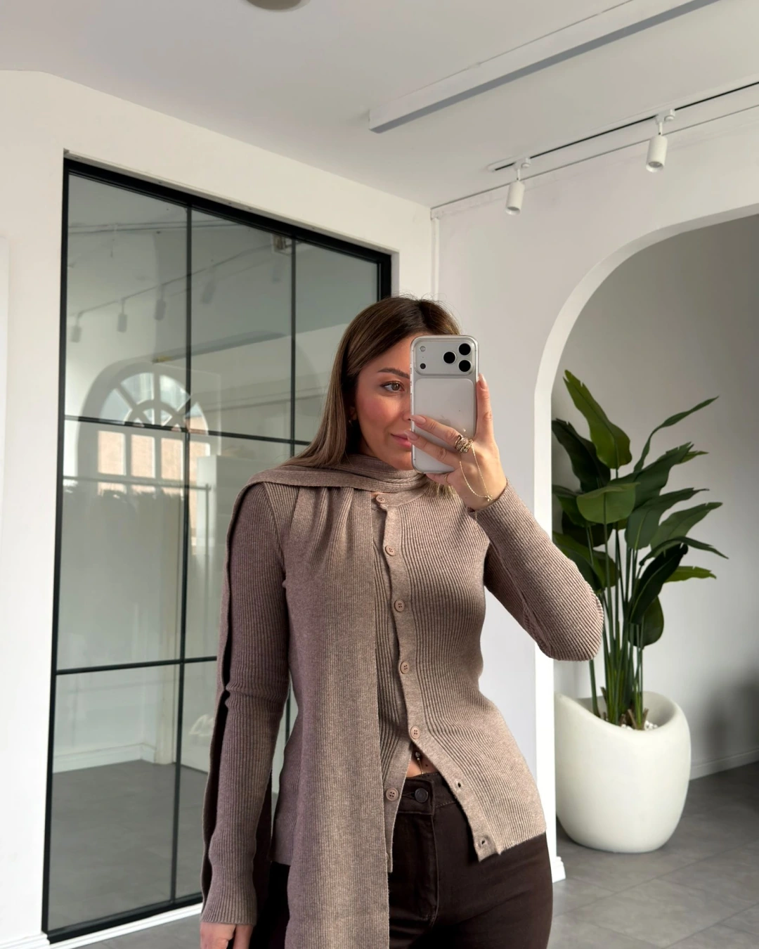 VİZON ŞAL DETAYLI TRİKO HIRKA