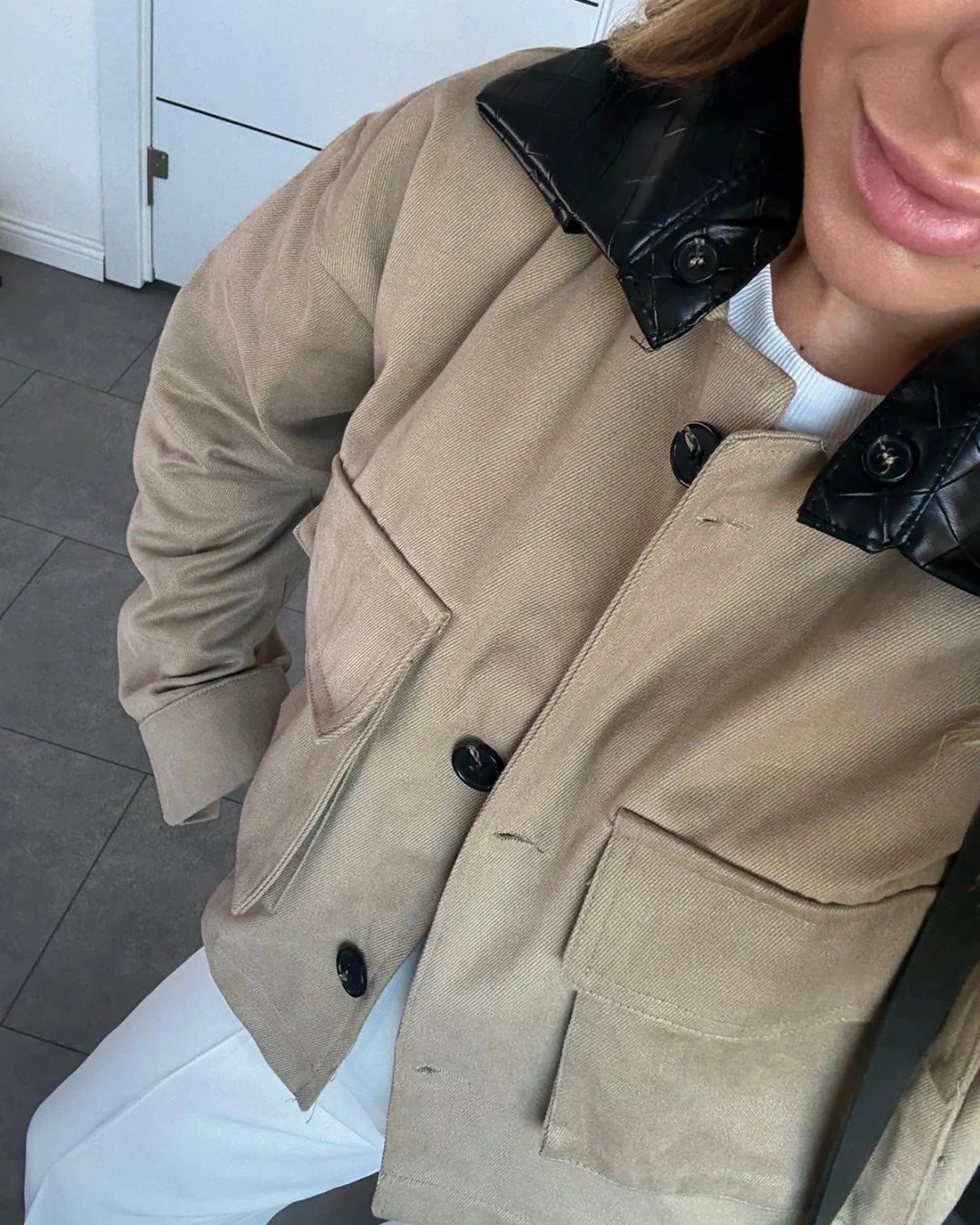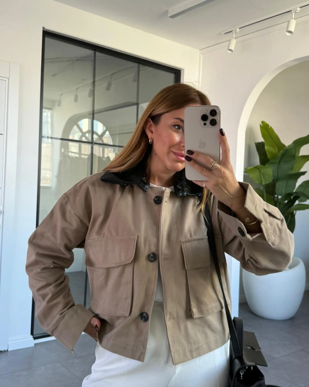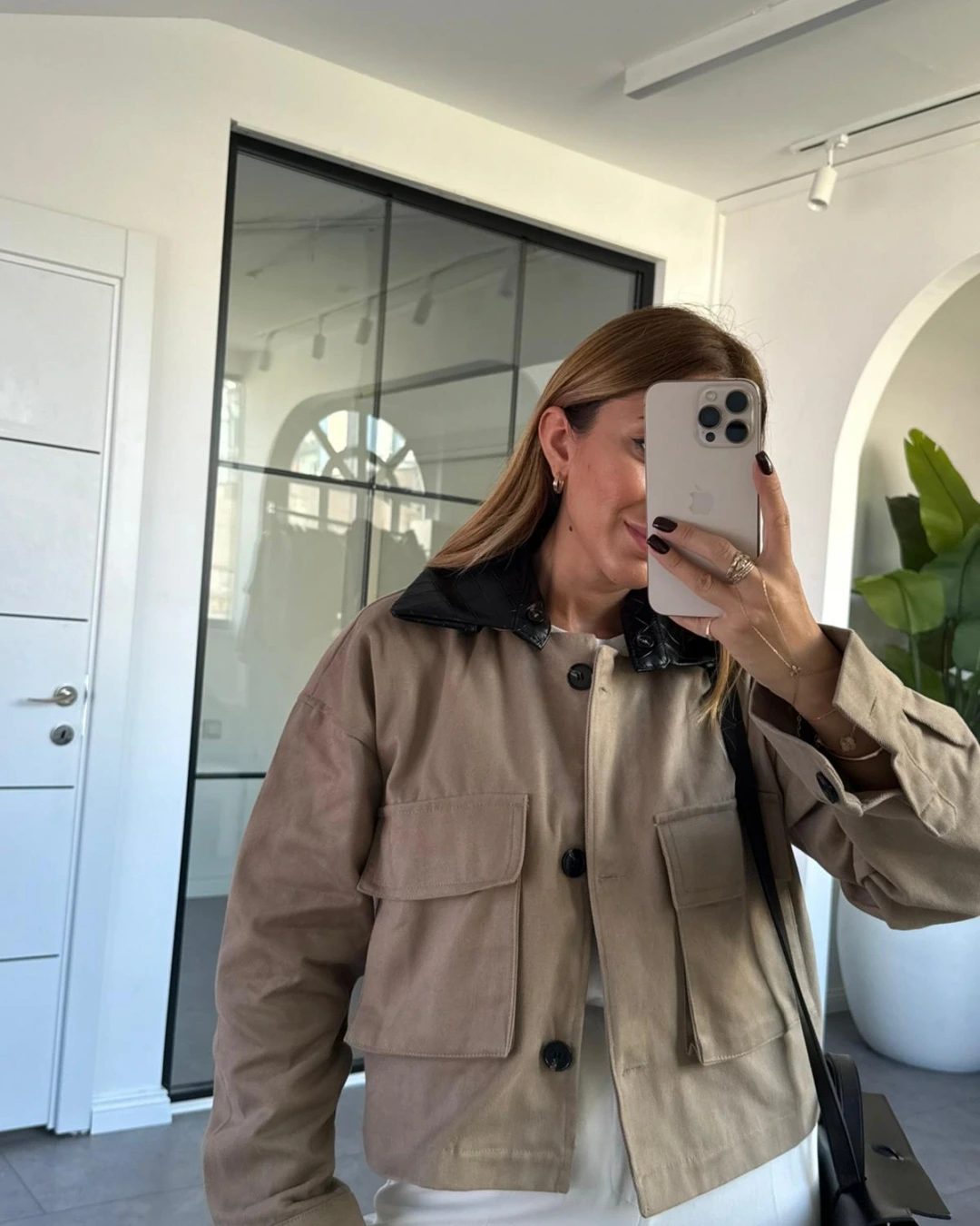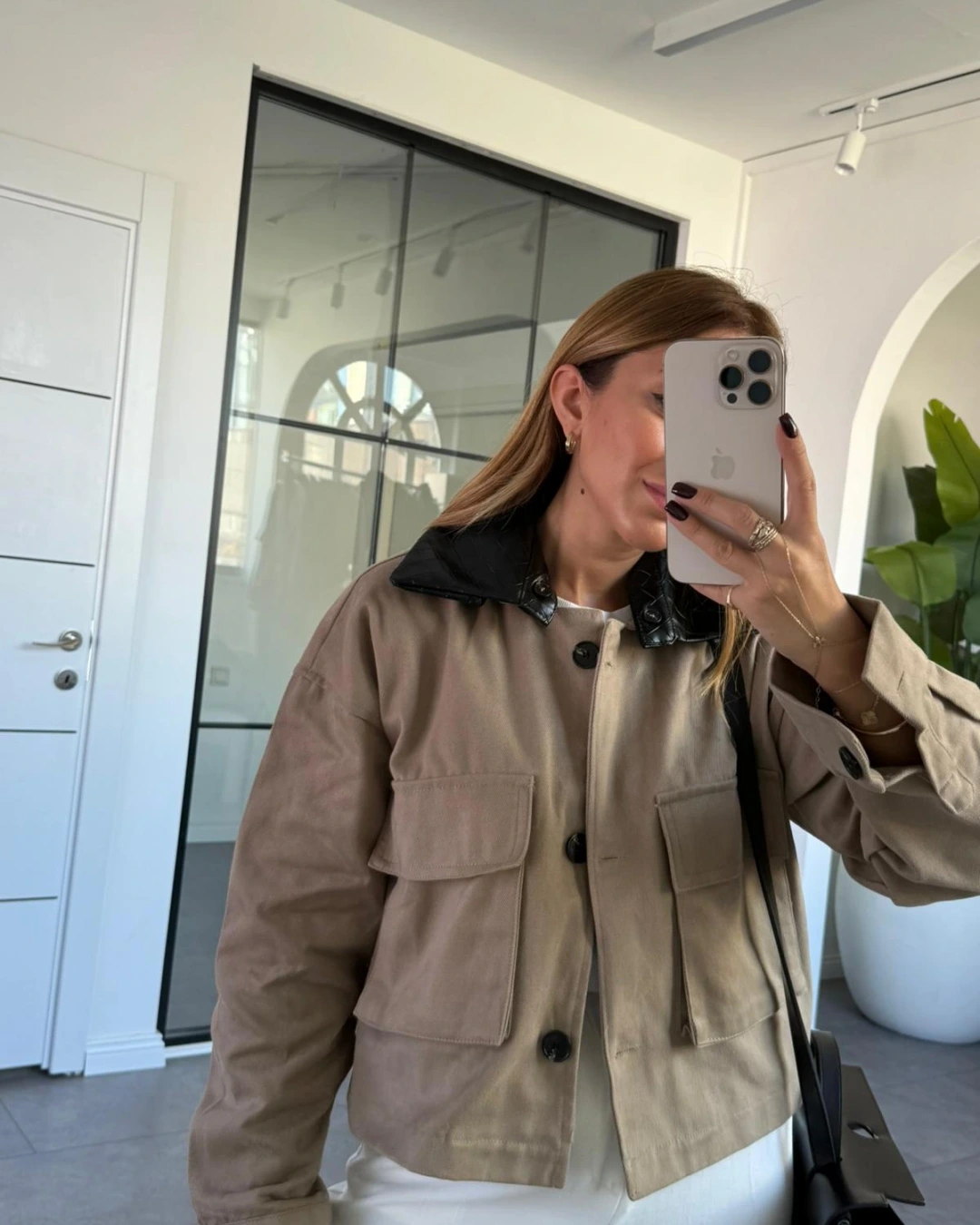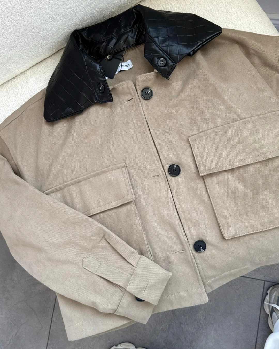 VİZON YAKASI DERİLİ GABARDİN CEKET