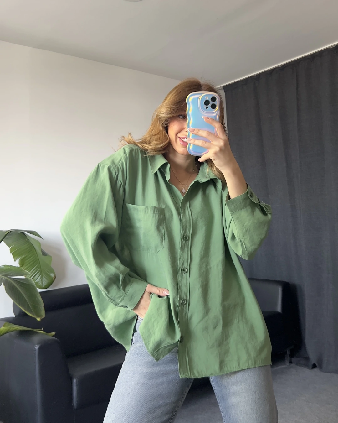 Yeşil Tensel Viral Salaş Gömlek